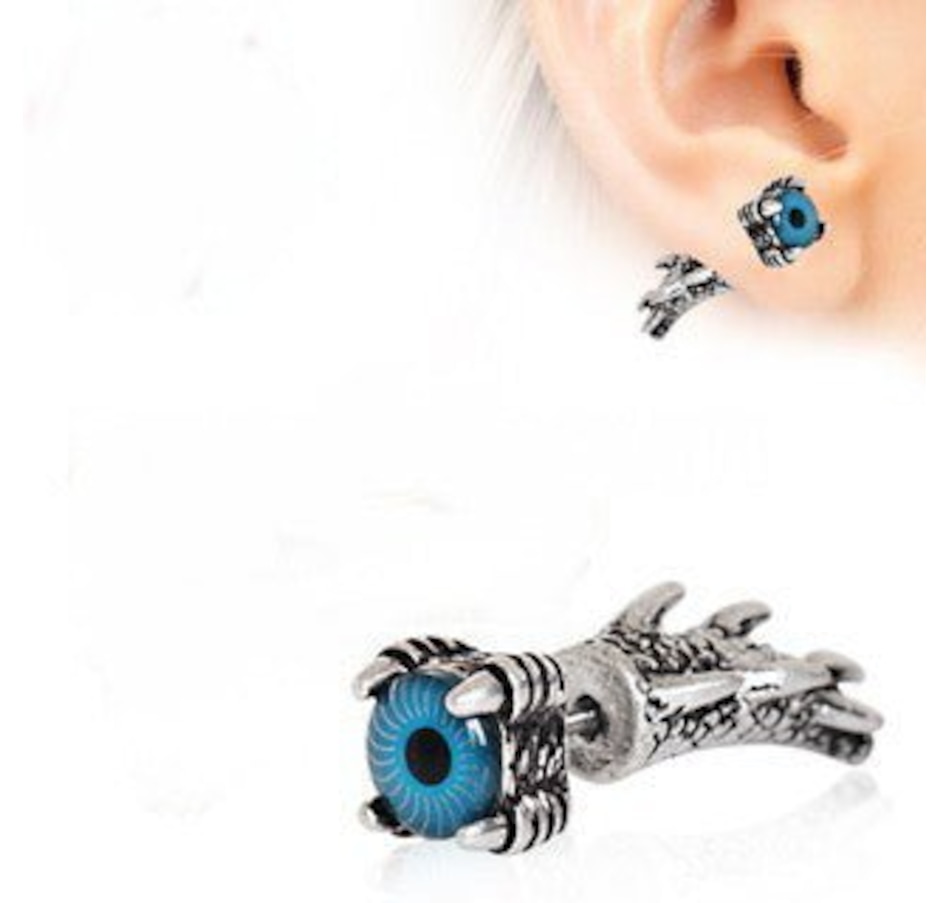 Gothic design dragon claw and Blue evil eye‚Stainless Steel Jewelry‚Dragon claw holding Blue evil eye in the front‚Dragon tail in the back‚Partially Black plated for a gothic look‚Simulate a 00 gauge look without piercing‚Thickness : 16GA | 1.2mm‚Length : 1/4" | 6mm‚Claw & Evil Eye Size : 00GA | 10mm‚Available in Stainless Steel‚ Only‚Material : 316L Stainless Steel, Alloy Steel, Gold Plated Alloy Steel, Acrylic*Sold in Singles