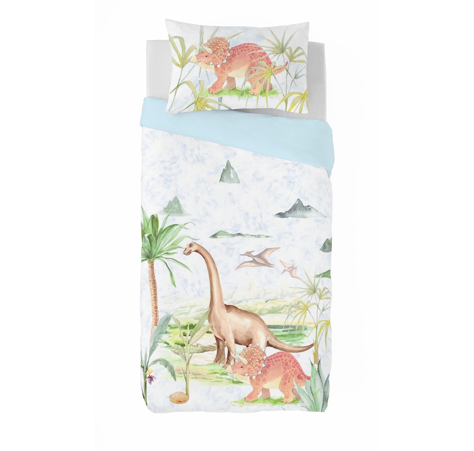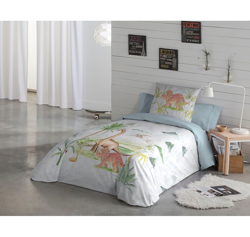 This duvet cover set is digitally printed in Spain. It is reversible from its design to solid colour side, made with a 140 thread count, and 100% oeko-tex certified cotton.