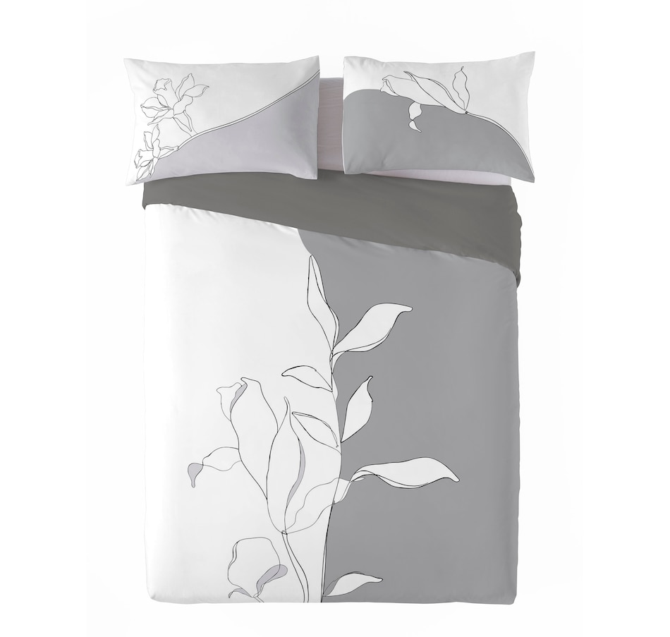 This duvet cover set is digitally printed in Spain. It is reversible from its design to solid colour side, made with a 140 thread count, and 100% oeko-tex certified cotton.