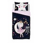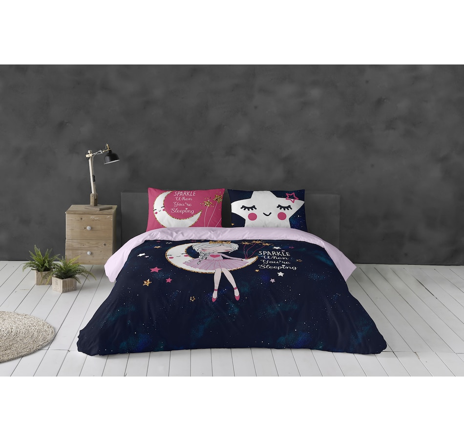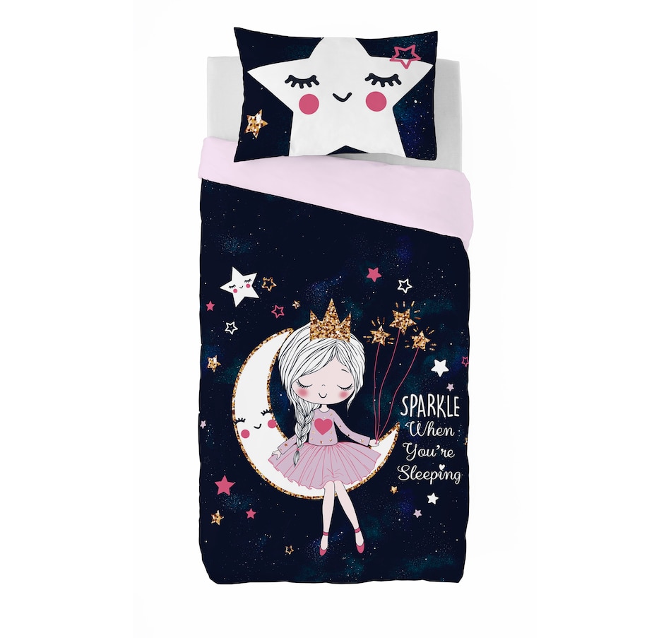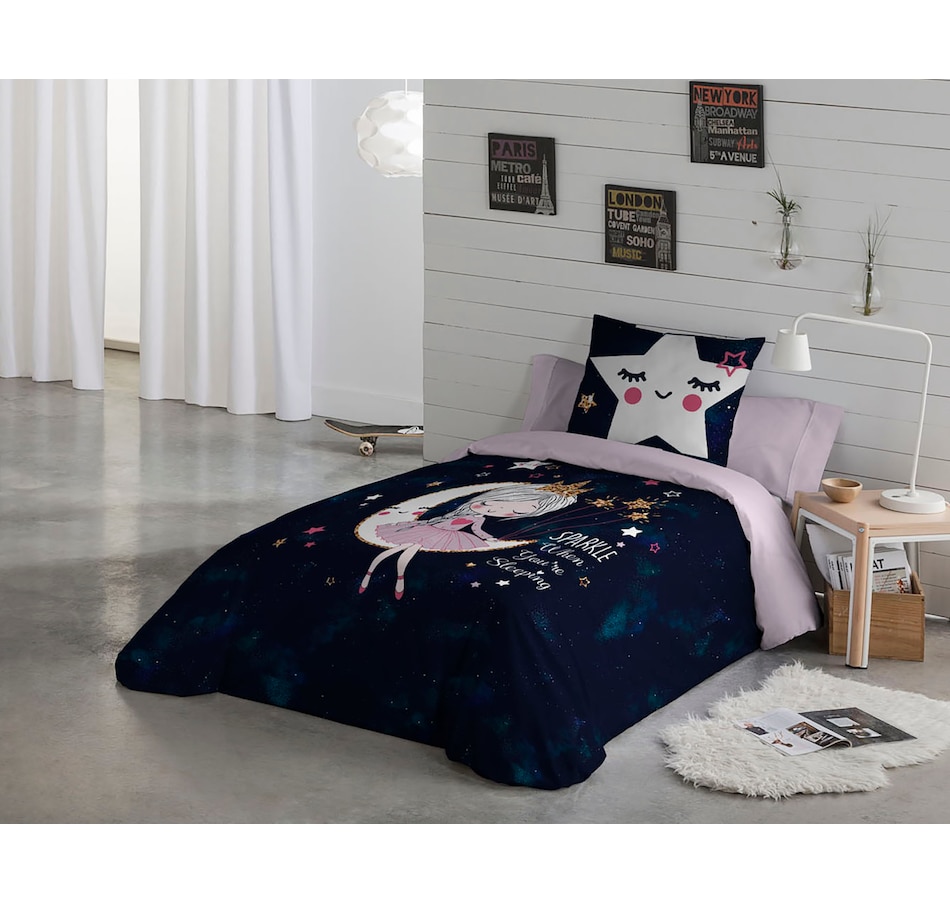 This duvet cover set is digitally printed in Spain. It is reversible from its design to solid colour side, made with a 140 thread count, and 100% oeko-tex certified cotton.