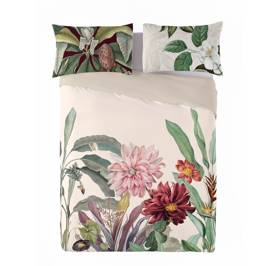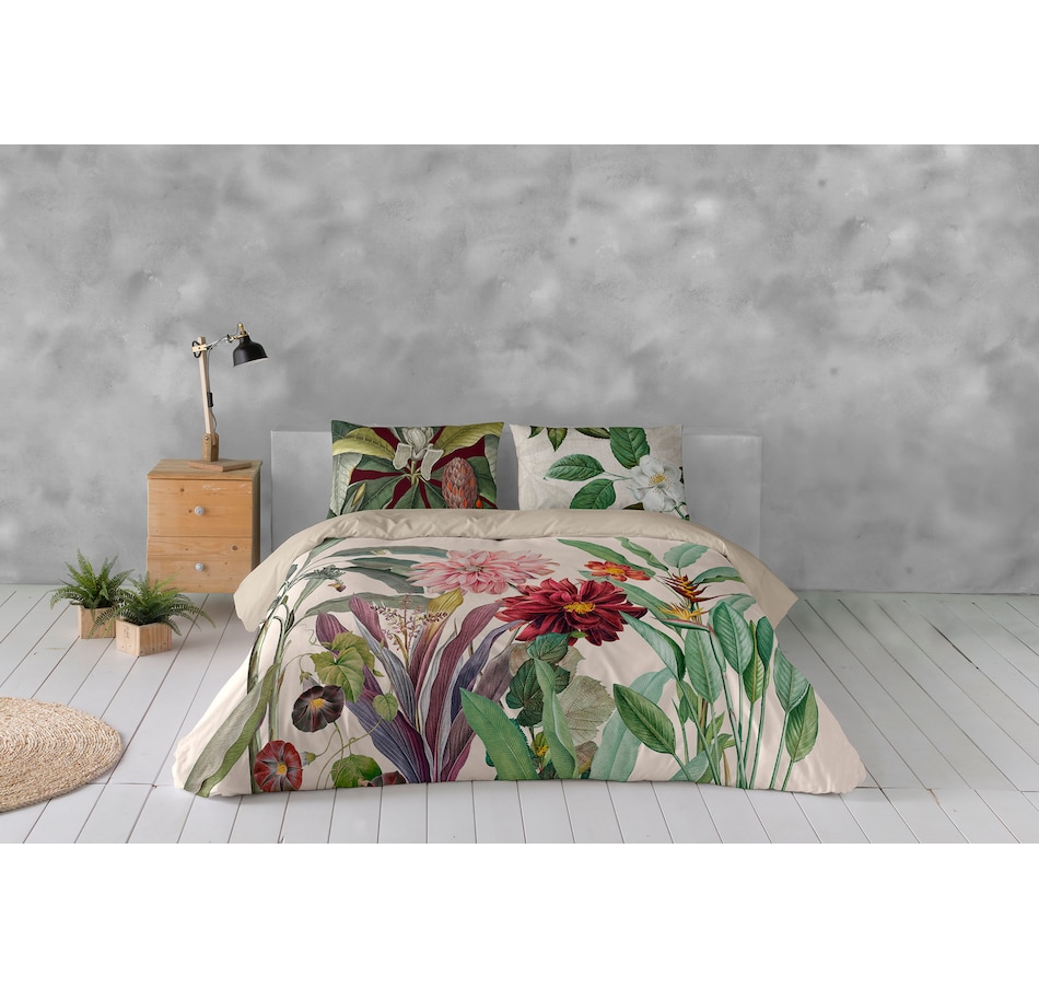 This duvet cover set is digitally printed in Spain. It is reversible from its design to solid colour side, made with a 140 thread count, and 100% oeko-tex certified cotton.