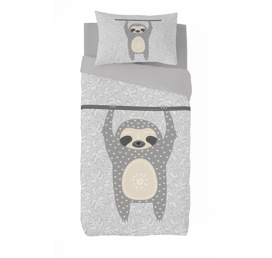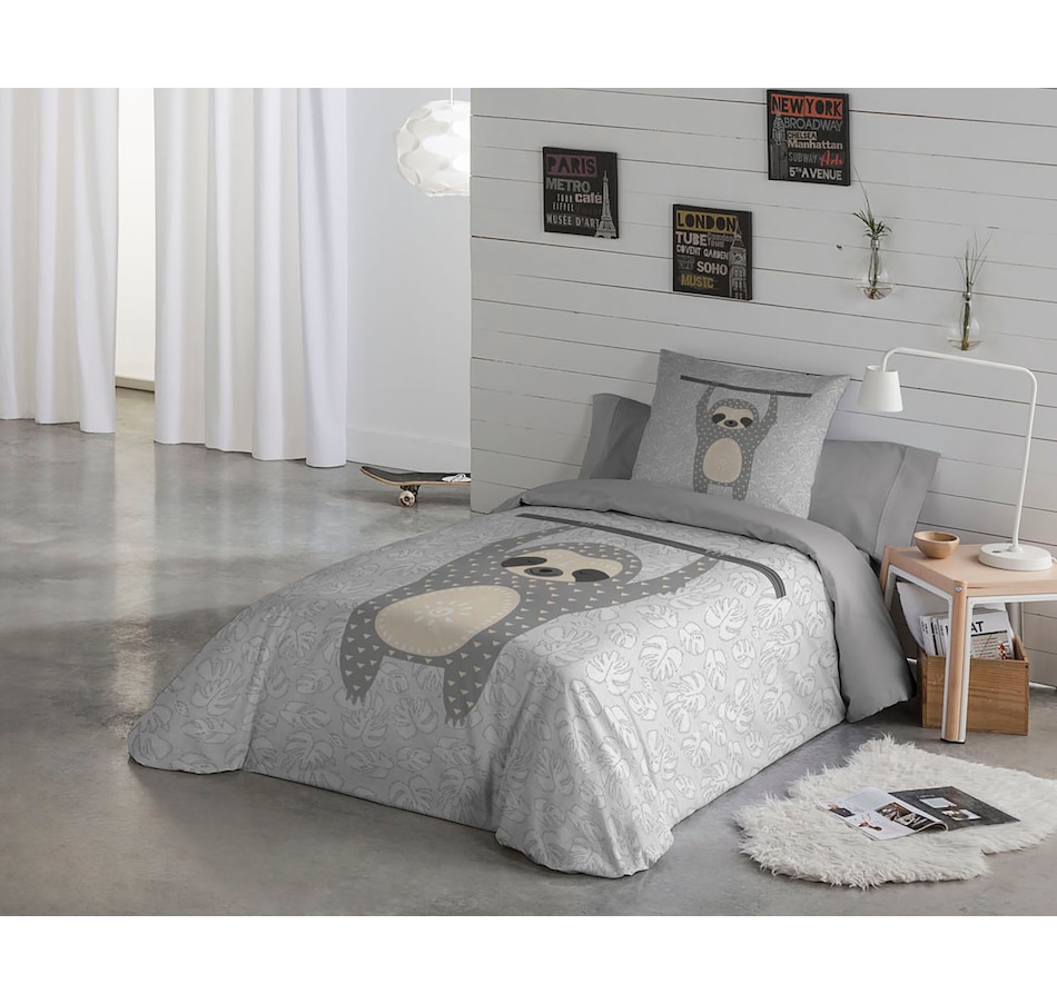 This duvet cover set is digitally printed in Spain. It is reversible from its design to solid colour side, made with a 140 thread count, and 100% oeko-tex certified cotton.