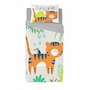This duvet cover set is digitally printed in Spain. It is reversible from its design to solid colour side, made with a 140 thread count, and 100% oeko-tex certified cotton.