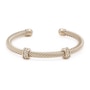 • Twist design cuff bangle with (2) wheel spacer accents & polished end caps