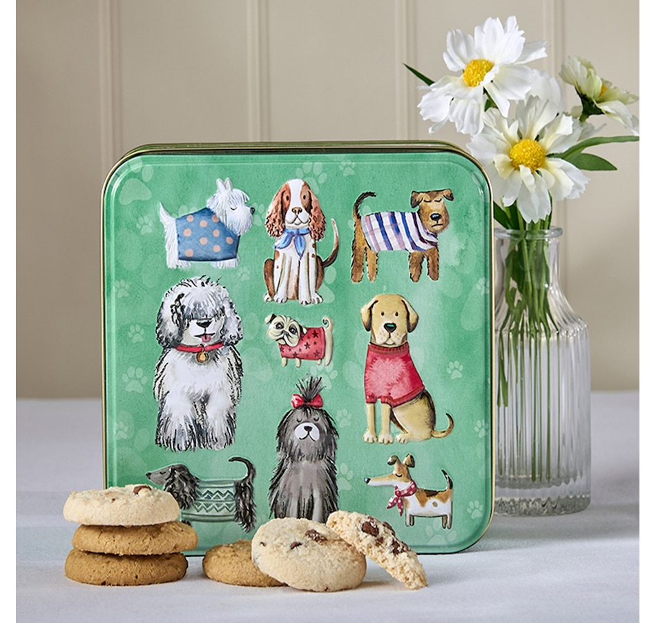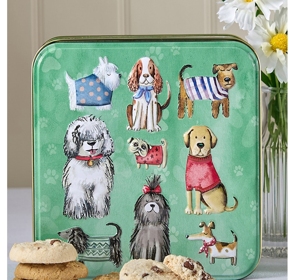 This beautifully made embossed tin features an adorable dogs-in-jumpers theme, perfect for dog lovers! This great keepsake tin comes with two of Grandma Wild’s most popular biscuits: Stem Ginger and Lemon, and Chocolate Chips and Clotted Cream Shortbread.