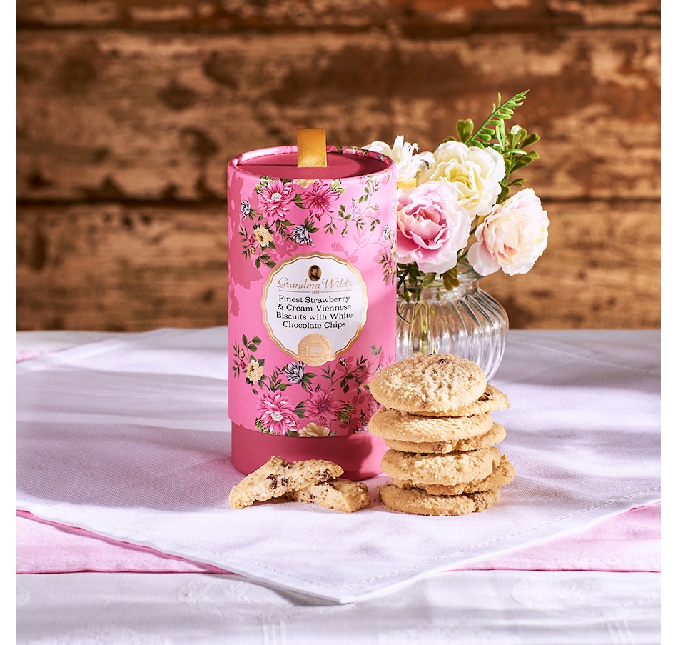 Grandma Wild's Victorian Floral Tube with Strawberry And Cream With White Chocolate Chips Biscuit (150g)