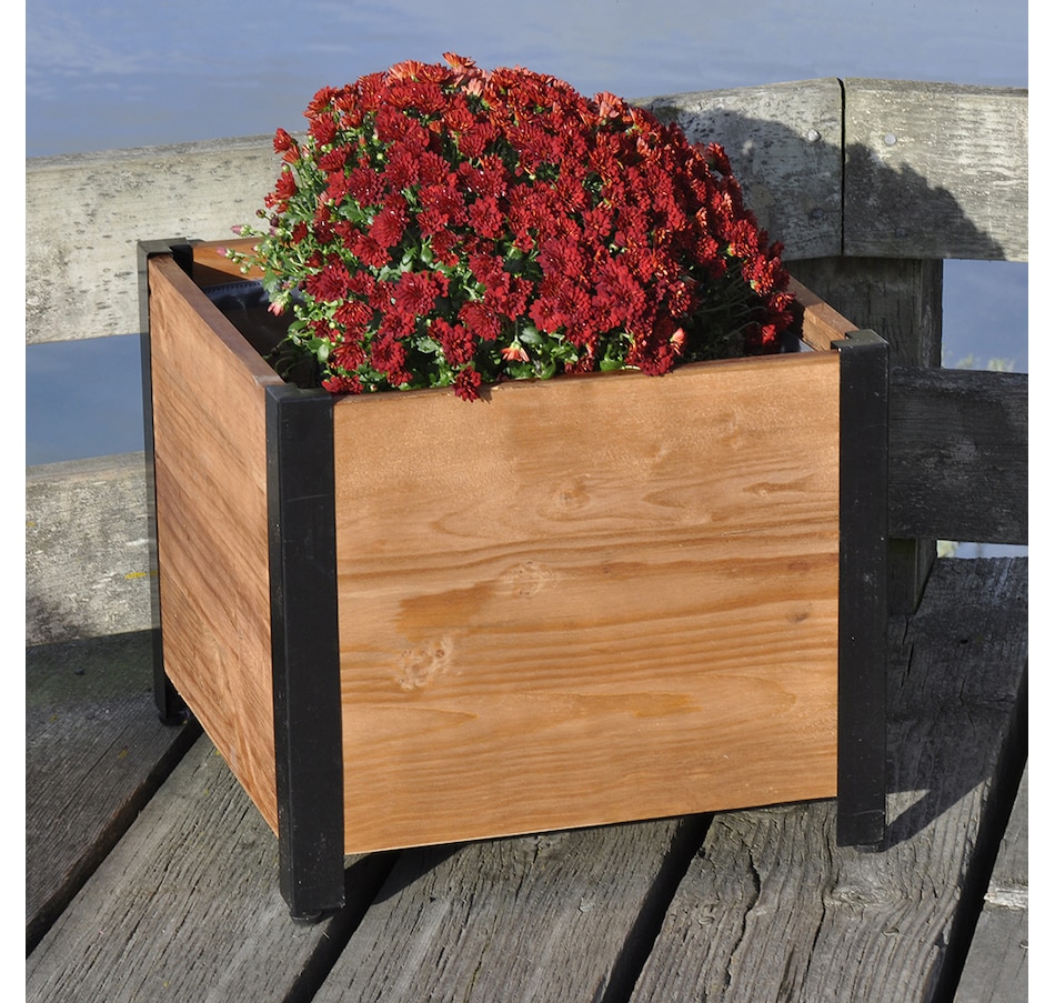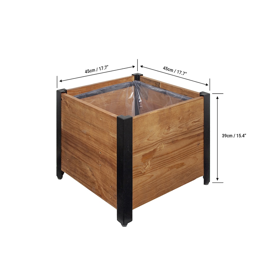 • Grapevine Square Urban Garden Planter, Recycled Wood and Metal