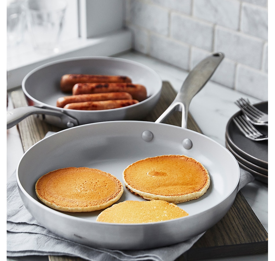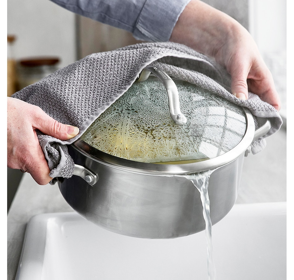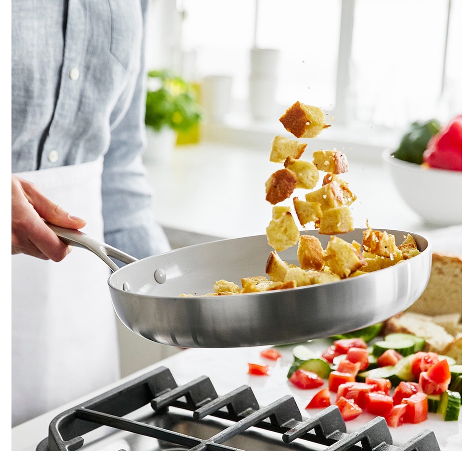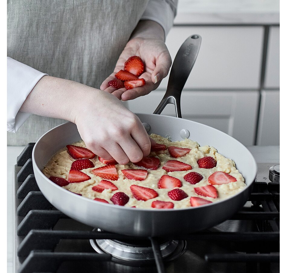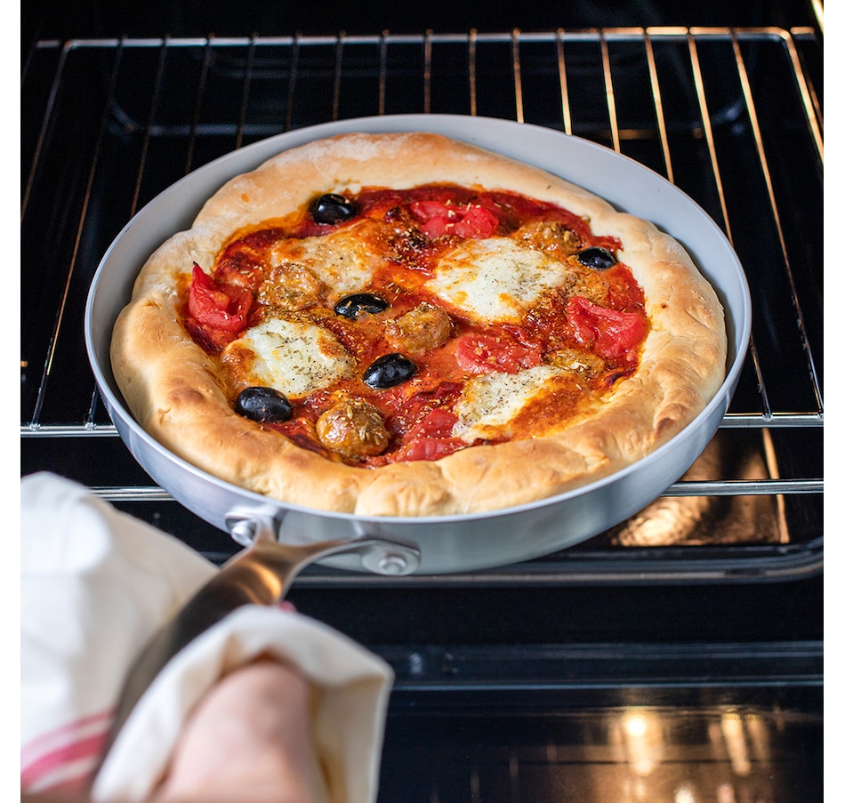 • Riveted stainless steel handle for easy transition from stovetop to oven