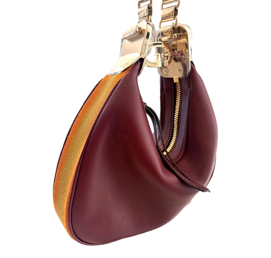 The Gucci Attaché Small Shoulder Bag in burgundy leather is a perfect blend of understated elegance and contemporary style. Crafted from smooth, supple red leather, this bag exudes a sense of refined luxury. The structured silhouette is accented with a distinctive gold-tone GG logo, offering a nod to the brand’s rich heritage. The slim, adjustable shoulder strap ensures versatility, allowing it to be worn comfortably as a crossbody or over the shoulder. Its compact size makes it an ideal accessory for both day and evening wear, providing just enough space for your essentials. With its timeless design and sophisticated color palette, the Gucci Attaché Small Shoulder Bag is a versatile and stylish addition to any wardrobe. Model: 702823 Soft red leather Orange and yellow web stripe along sides and bottom  Gold tone metal hardware  G clasp  Beige canvas lining Single compartment Zipper closure  Detachable blue and red stripe strap Detachable burgundy leather strap Dimensions: Base Length: 8.9 in Height: 5.3 in Width: 1.6 in Strap Drop: 16.5in Made in Italy  Includes Gucci dust bag and authenticity cards