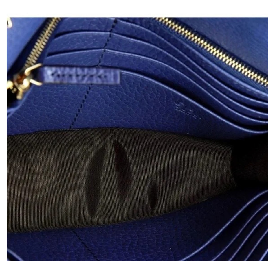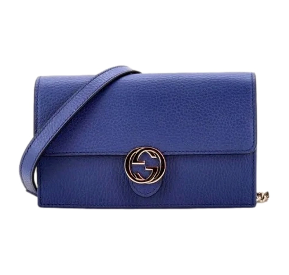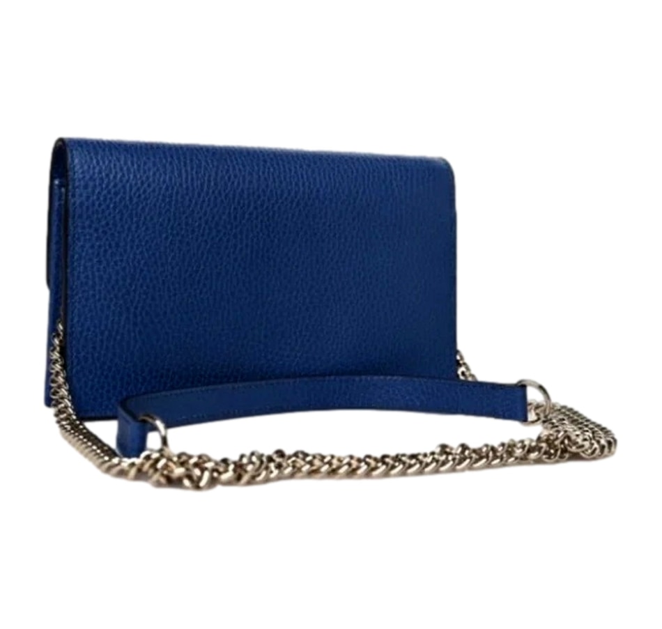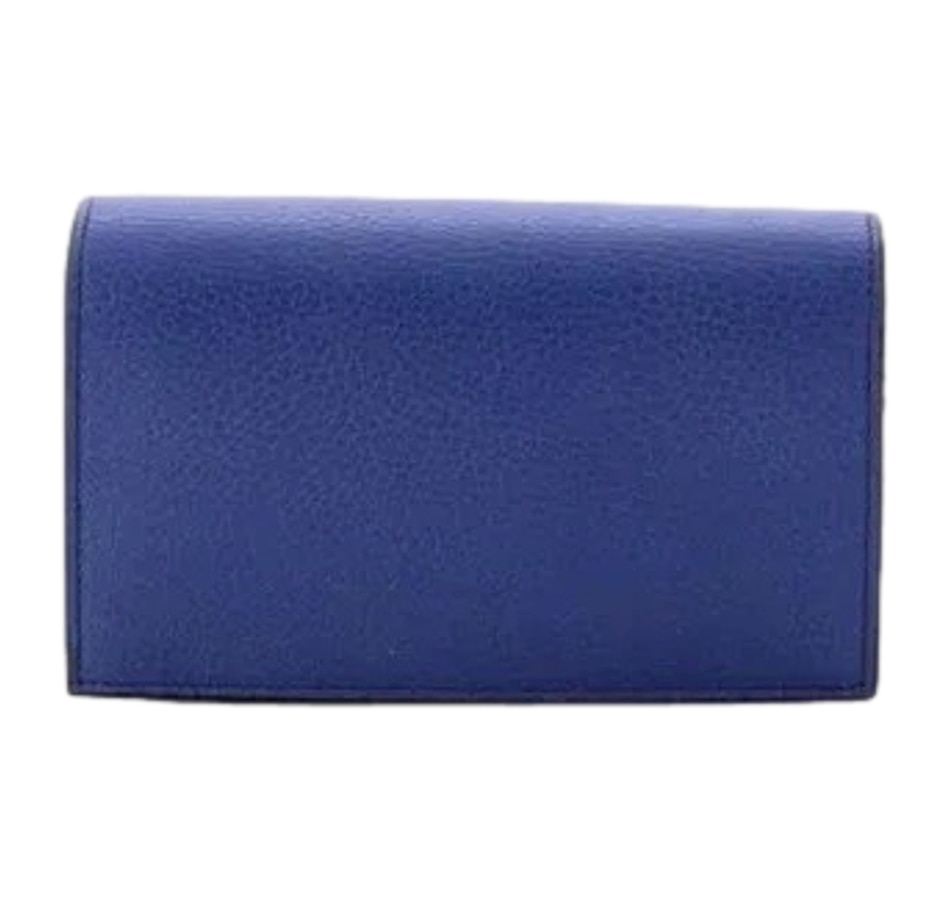 Perfect for both day and night, the Gucci Blue Marmont GG Wallet on Chain Crossbody Bag effortlessly elevates any outfit with its chic and timeless design. Whether you're heading to an evening event or running errands, this versatile piece adds a pop of color and sophistication to your look while keeping your essentials organized and within reach.