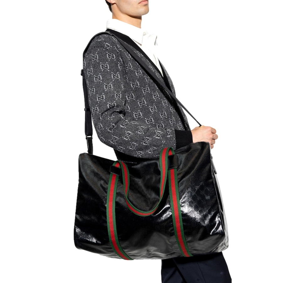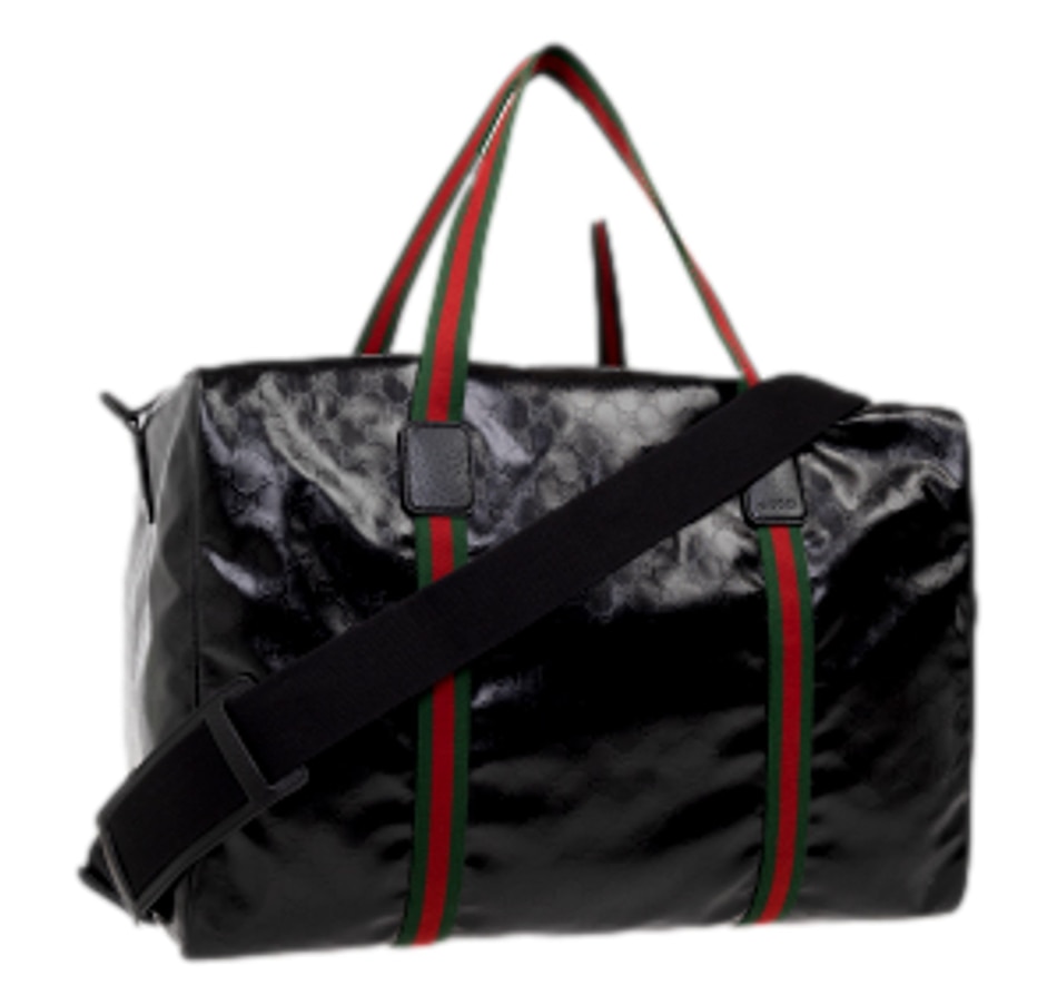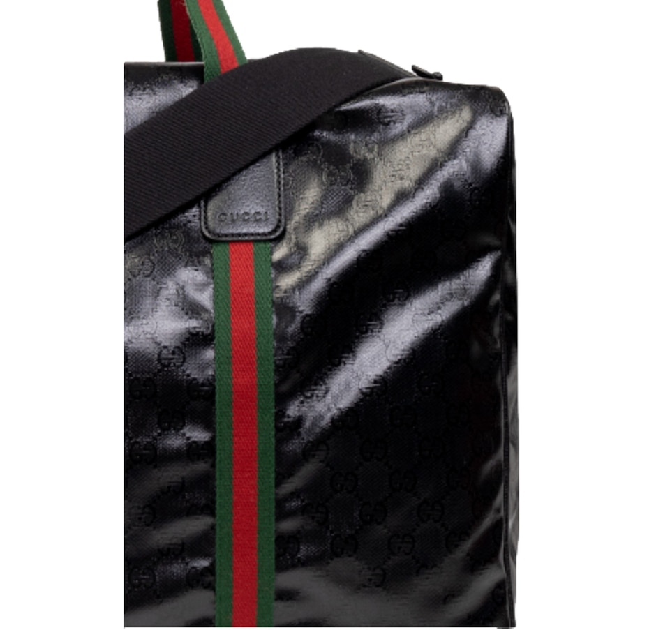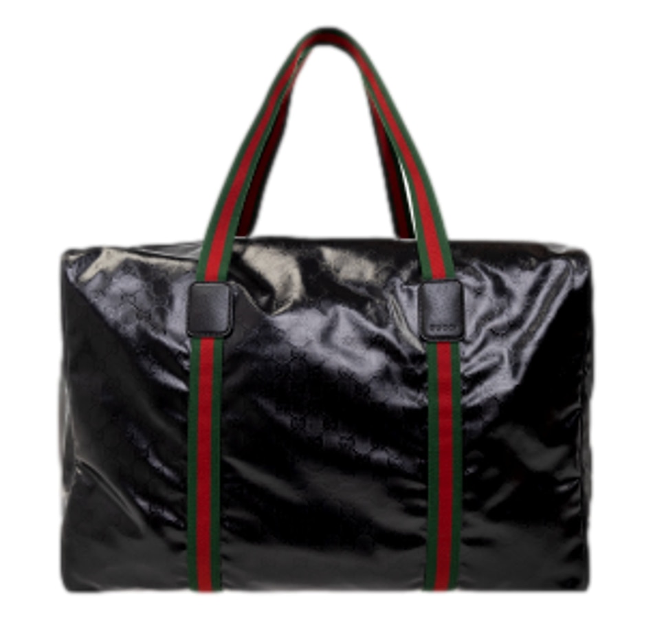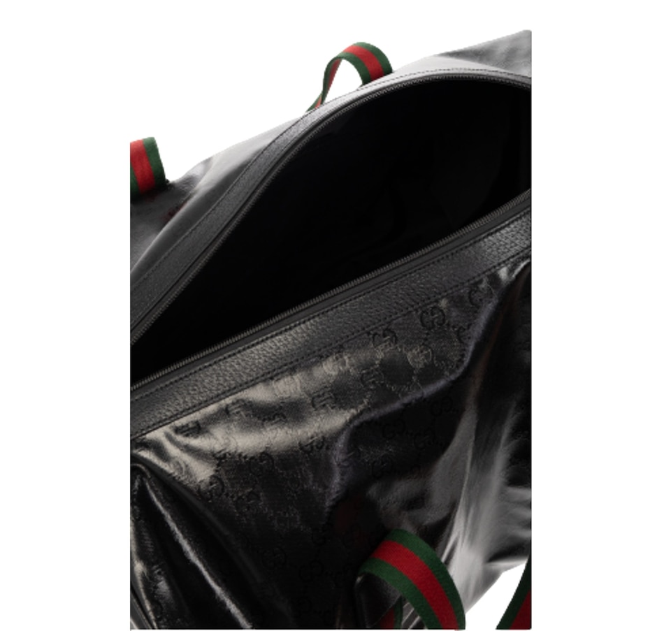 The Gucci GG Black Glossy ‘Duffle Maxi’ Calfskin Leather Trim Duffel Bag is a sophisticated and luxurious piece that embodies timeless style and exceptional craftsmanship. Made from high-quality glossy black fabric, it features the iconic GG logo, adding a subtle yet distinctive touch of brand heritage. The bag is expertly trimmed with smooth calfskin leather, offering durability and elegance. With its spacious interior, this duffel bag is perfect for travel or everyday use, providing ample room for essentials while maintaining a sleek, refined silhouette. Its comfortable canvas webstripe handles and optional shoulder strap make it versatile and easy to carry, combining both functionality and fashion in one statement piece.