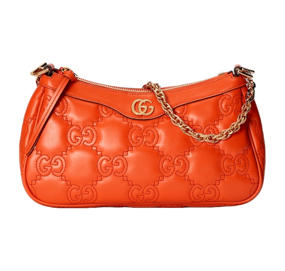 With its bold color, luxurious material, and timeless design, the Gucci GG Quilted Matelassé Handbag in Orange is a statement piece that combines modern style with Gucci's iconic heritage, perfect for adding a touch of sophistication and fun to any ensemble.