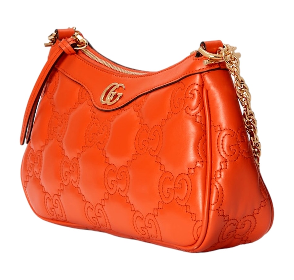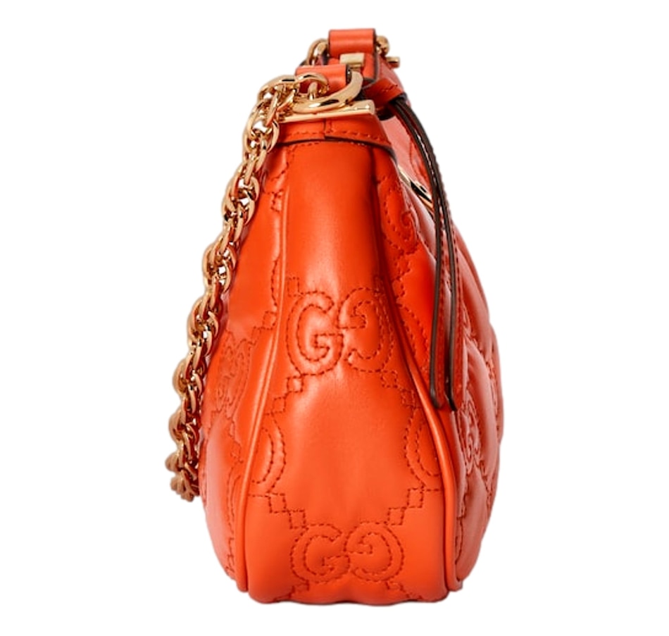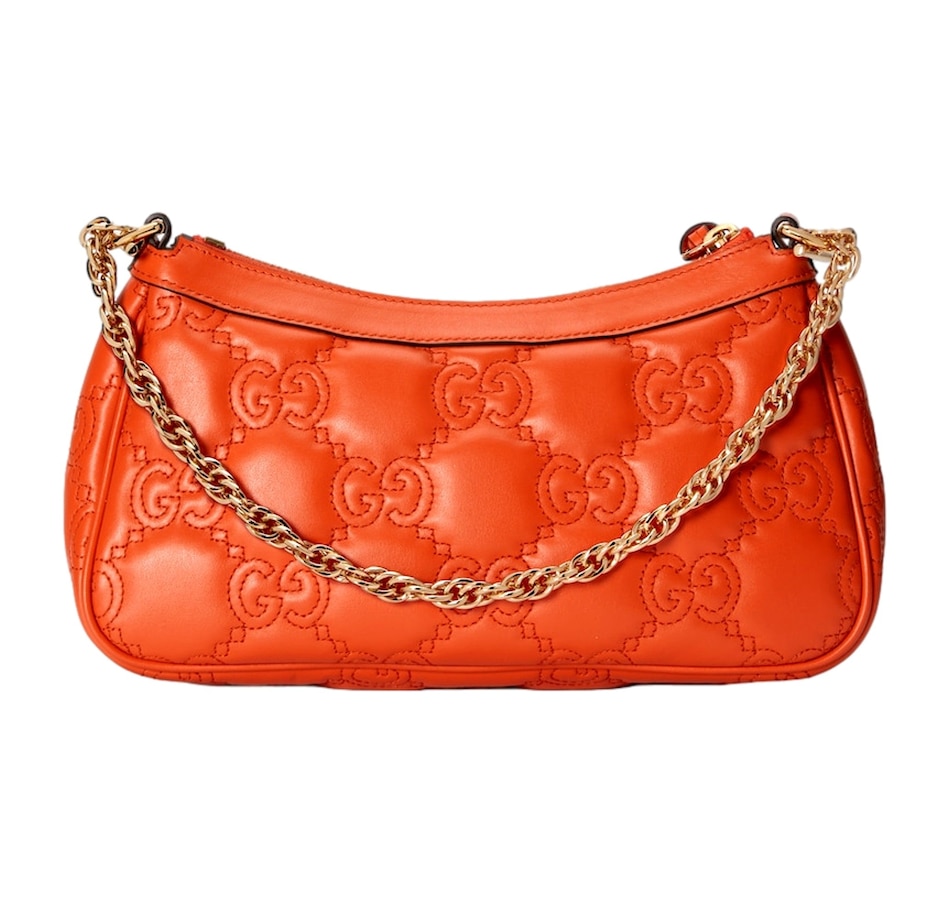 With its bold color, luxurious material, and timeless design, the Gucci GG Quilted Matelassé Handbag in Orange is a statement piece that combines modern style with Gucci's iconic heritage, perfect for adding a touch of sophistication and fun to any ensemble.