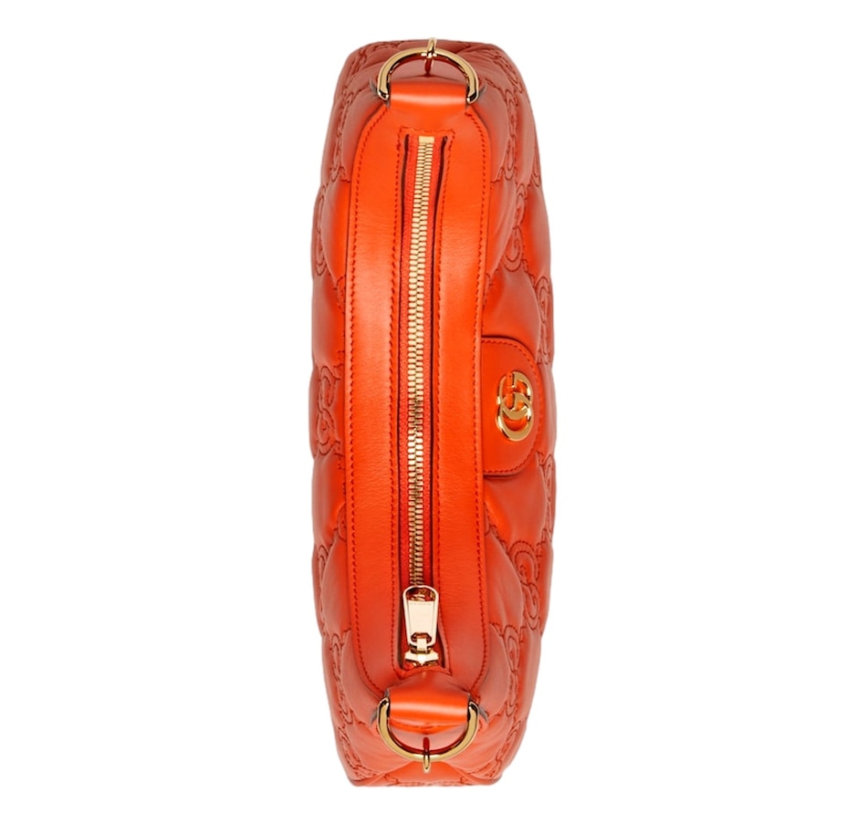 With its bold color, luxurious material, and timeless design, the Gucci GG Quilted Matelassé Leather Small Shoulder Handbag in Orange is a statement piece that combines modern style with Gucci's iconic heritage, perfect for adding a touch of sophistication and fun to any ensemble.