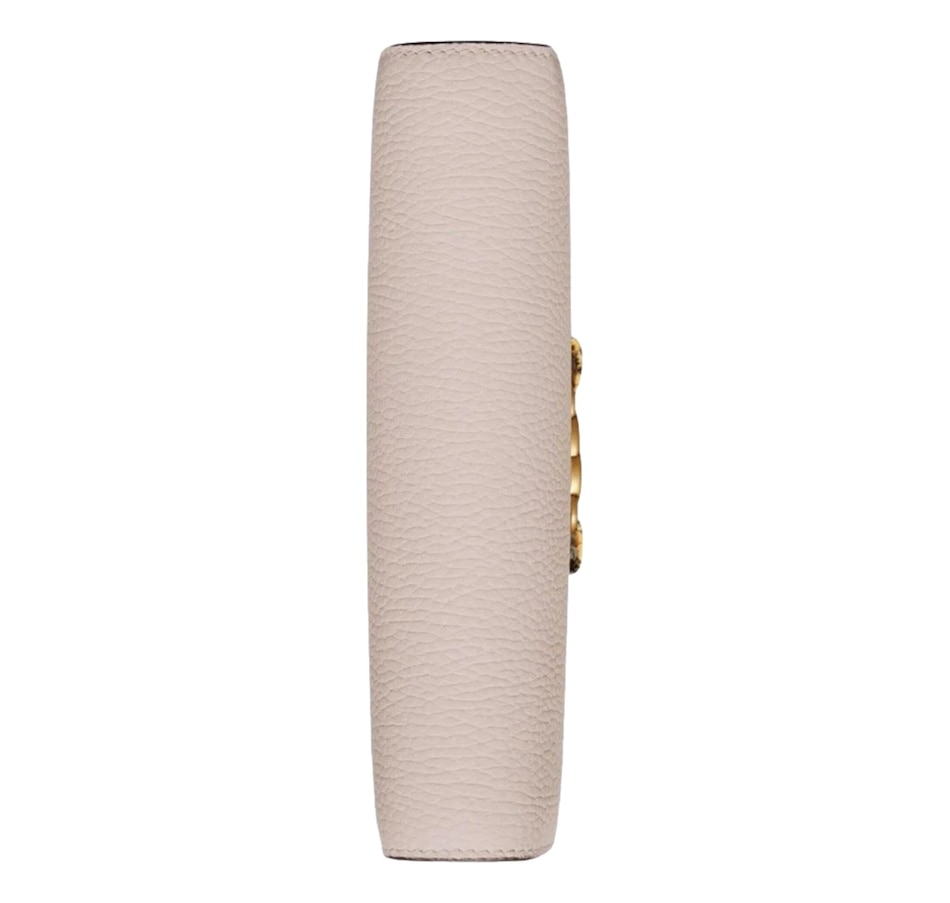 The Gucci Interlocking G Leather Wallet is a stunning blend of sophisticated design and luxurious materials. Crafted from smooth, high-quality leather, this wallet exudes elegance and timeless appeal. The standout feature is the front bow detail, made from textured python leather, which adds a touch of exotic charm and femininity to the design. The bow beautifully contrasts with the sleek leather, making it a statement piece that's both refined and eye-catching.