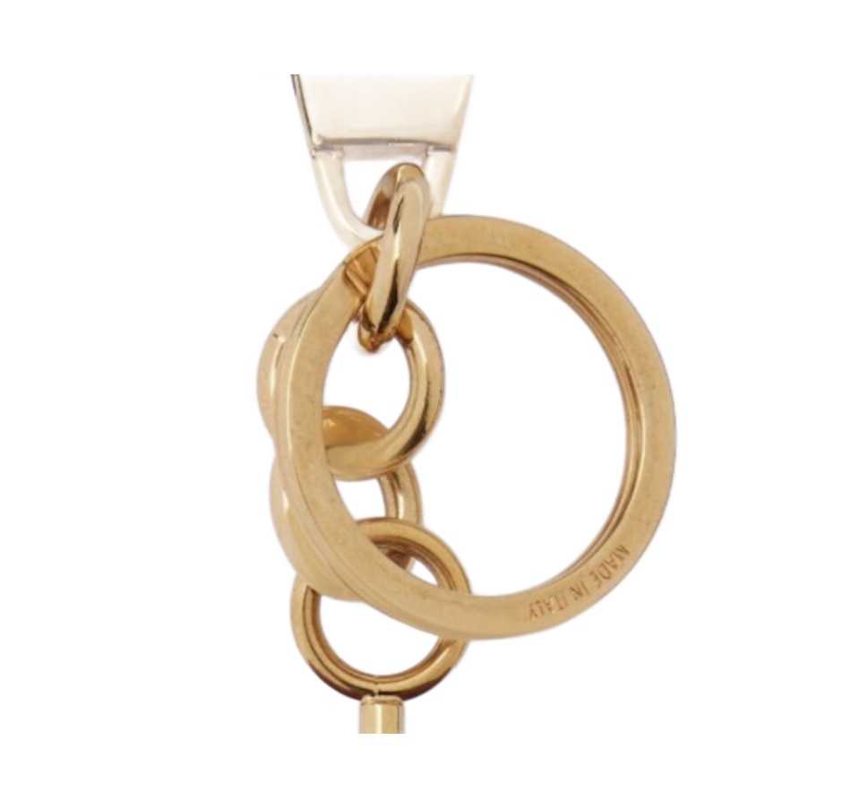 The Gucci Interlocking G Purple and Red Glitter Keychain Handbag Charm is a dazzling accessory that brings a touch of sparkle and luxury to any handbag or keyring. Featuring the iconic Interlocking G logo, this keychain is crafted with vibrant purple and red glitter accents, creating a bold and eye-catching contrast. The glitter detailing gives the charm a playful, glamorous appeal, while the polished gold finish ensures durability and a refined look.
