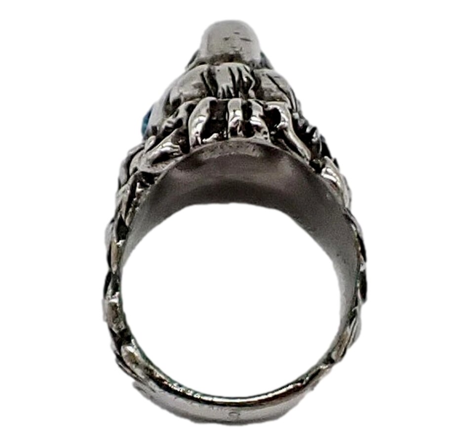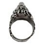 The Gucci Lion Head Motif Silver Ring with a clear crystal is a striking blend of bold symbolism and refined craftsmanship. Made from high-quality silver metal, the ring features an intricately detailed lion head motif, a powerful emblem of strength, courage, and regal allure. The lion's fierce expression is beautifully sculpted, capturing the timeless essence of Gucci's craftsmanship and attention to detail. At the center of the lion's mouth sits a mesmerizing Swarovski crystal, which adds an ethereal touch to the piece.  This piece is perfect for adding a touch of luxury and drama to any outfit, whether worn alone or stacked with other rings. The Gucci Lion Head Motif Silver Ring with a clear crystal is a bold and sophisticated accessory that embodies the brand's distinctive blend of high fashion, symbolism, and timeless style. Model: 402763 Antiqued silver-tone metal Clear crystal embellishment  Gucci Size: 13 US Size: 6 1/2 (S) Made in Italy Includes Gucci purple satin dust bag