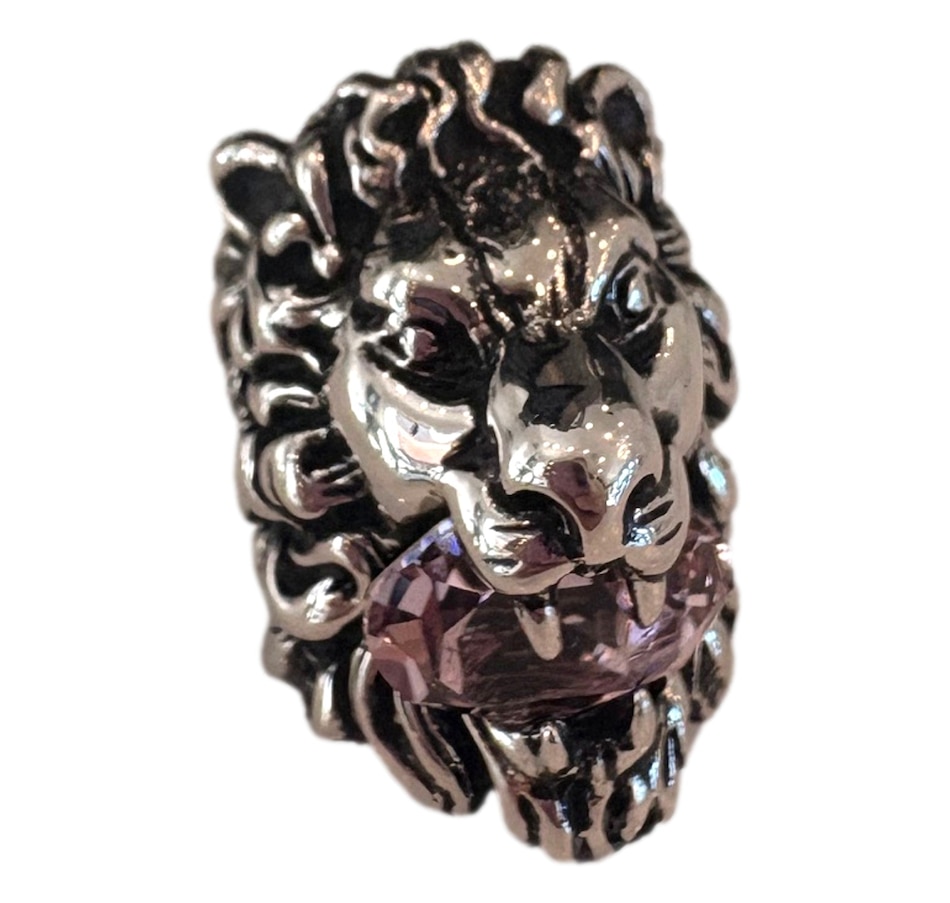 At the center of the lion's mouth sits a mesmerizing Swarovski crystal, which adds an ethereal touch to the piece.