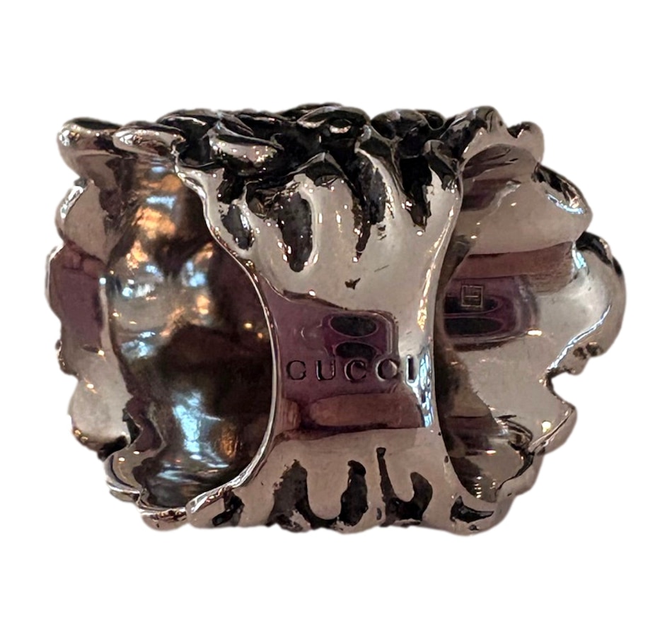 This piece is perfect for adding a touch of luxury and drama to any outfit, whether worn alone or stacked with other rings. The Gucci Lion Head Motif Silver Ring with a clear crystal is a bold and sophisticated accessory that embodies the brand's distinctive blend of high fashion, symbolism, and timeless style.