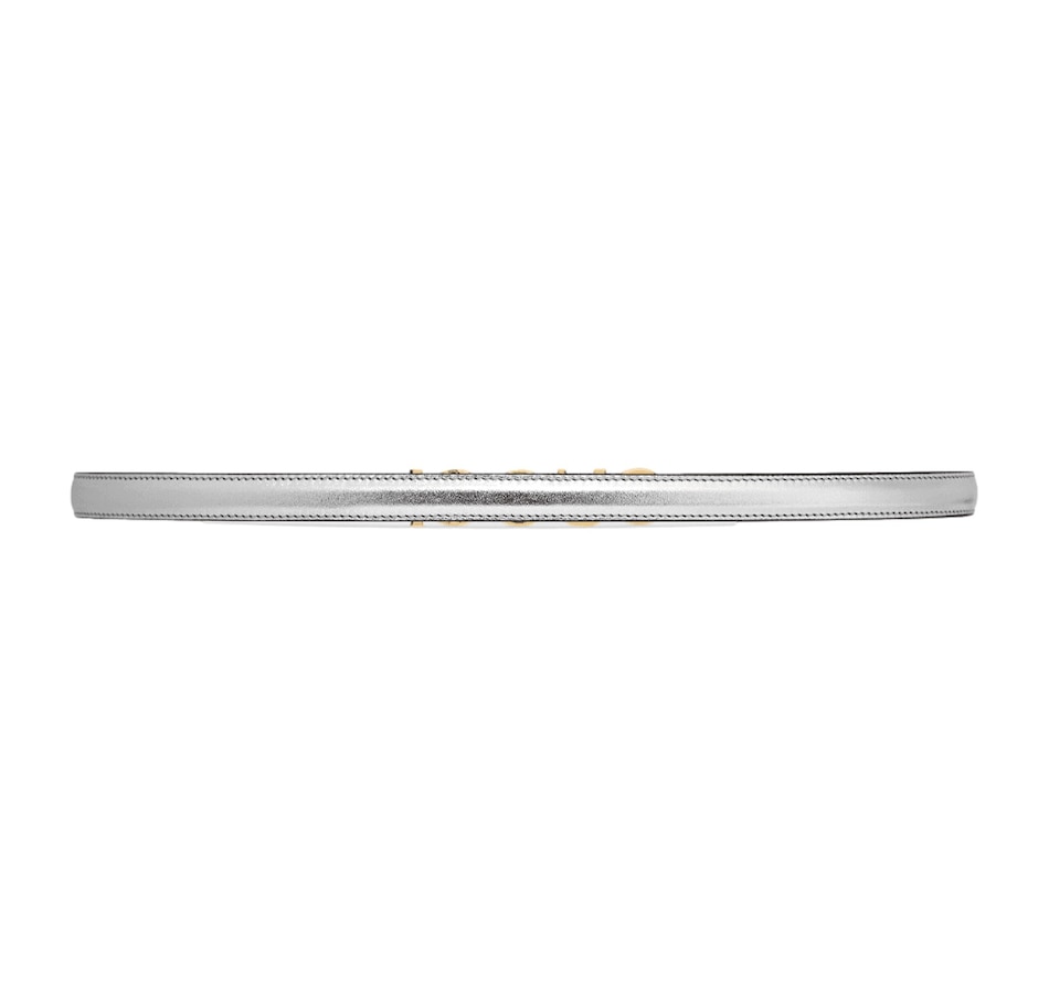 The Gucci Silver Leather Belt with Metal Gold Logo Lettering in size 75 is a refined and elegant accessory that effortlessly elevates any outfit. Crafted from high-quality silver-colored leather, the belt exudes a soft yet sophisticated appeal, making it versatile enough to pair with both casual and formal attire. The standout feature is the bold metal gold Gucci logo lettering prominently displayed on the buckle, adding a touch of opulence and unmistakable brand recognition. The size 75 belt is designed to fit waist measurements corresponding to a medium or smaller size, ensuring a comfortable and stylish fit. With its luxurious materials, attention to detail, and timeless design, this belt is a perfect statement piece for any wardrobe. Model: 751602 Silver leather Gold GUCCI logo Adjustable size  Length: 29.5in Width: .60in New with tags, includes authenticity cards and dustbag