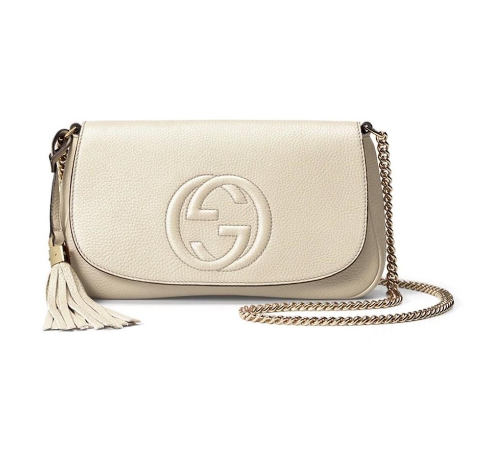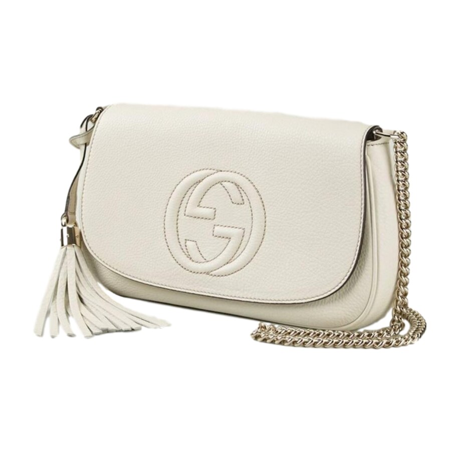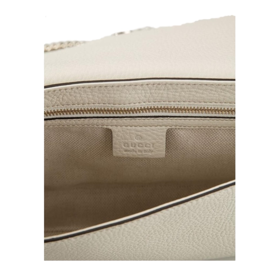 This beautiful embossed ivory crossbody is the perfect bag for any everyday look. The color makes it easy to match everything in your wardrobe and the classic embossed Gucci logo makes it a complete classic piece for any handbag collection. This bag is light weight and simply perfect.