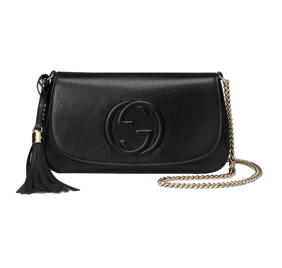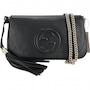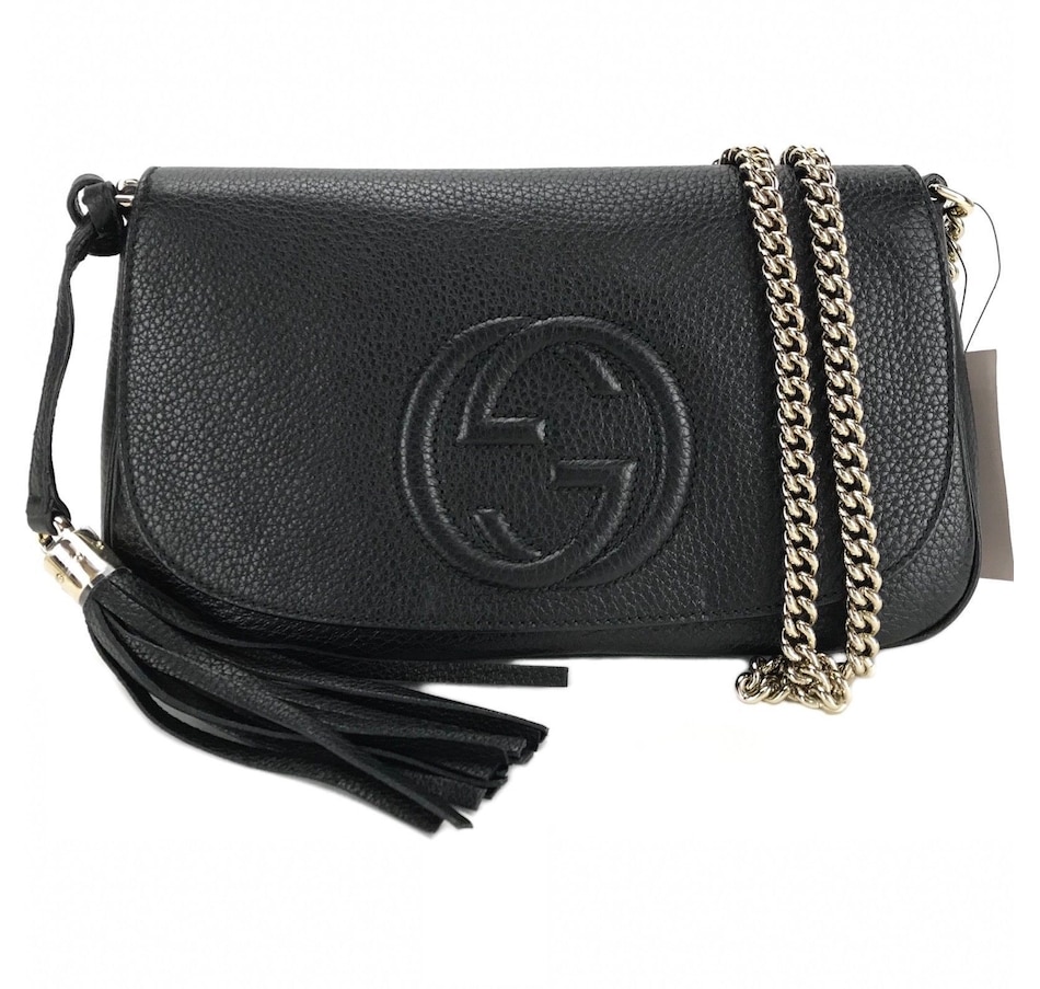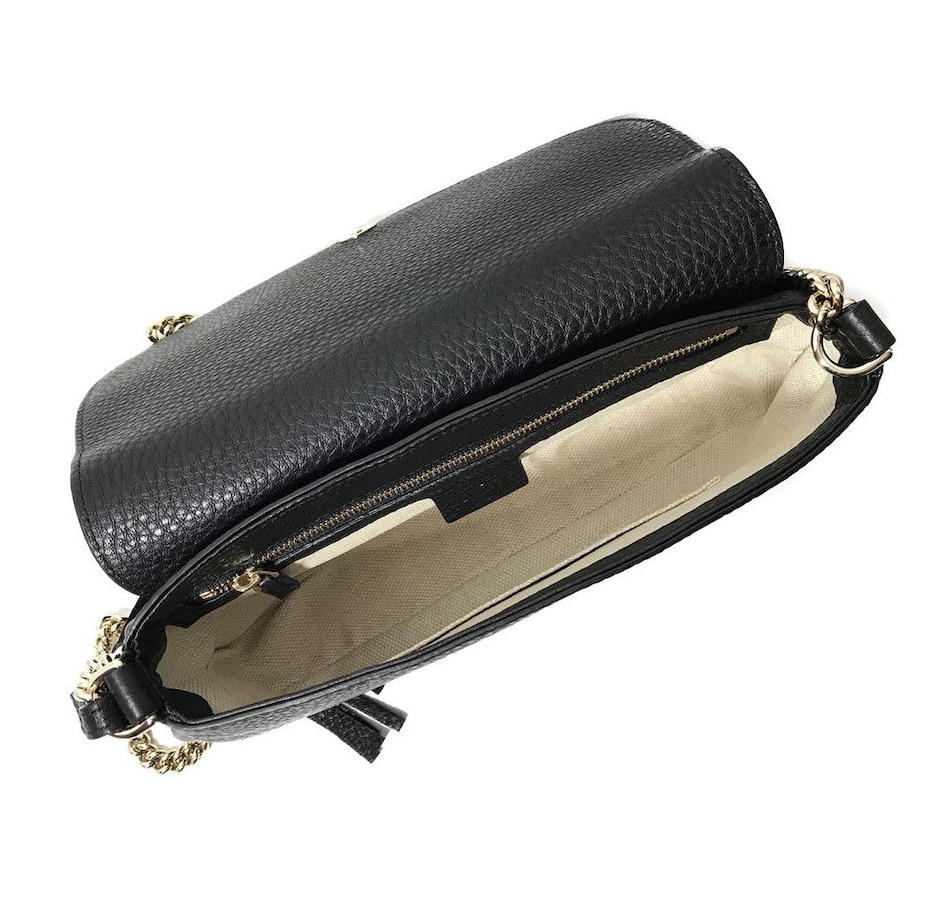 This beautiful embossed black crossbody is the perfect bag for any everyday look or dressed up for a night out. The color makes it easy to match everything in your wardrobe and the classic embossed Gucci logo makes it a complete classic piece for any handbag collection. The detachable leather tassel is a perfect fun touch to this bag. Though lightweight and its small appearance, this bag is large enough to easily carry all of your essentials.