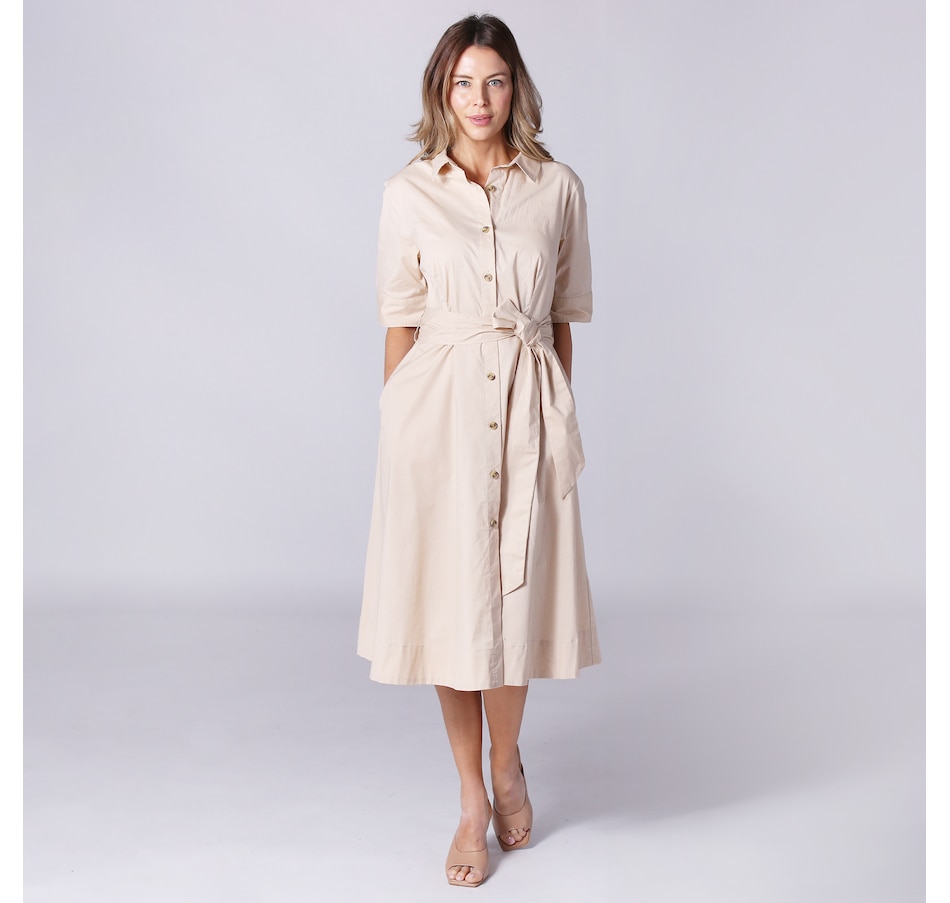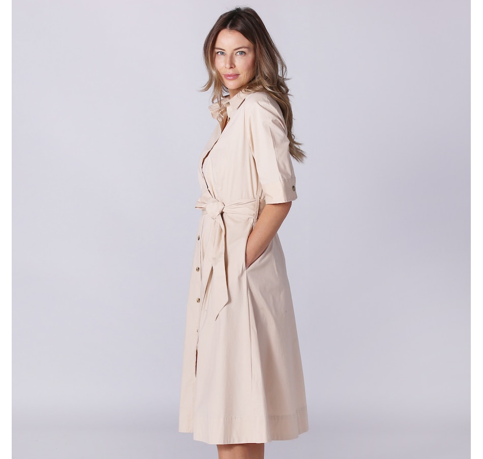 Another wardrobe staple, this dress has a beautiful shape that is extremely flattering from the line shape of the skirt. The stretch cotton allows for breathability and freedom of movement, and it's an easy care garment too.