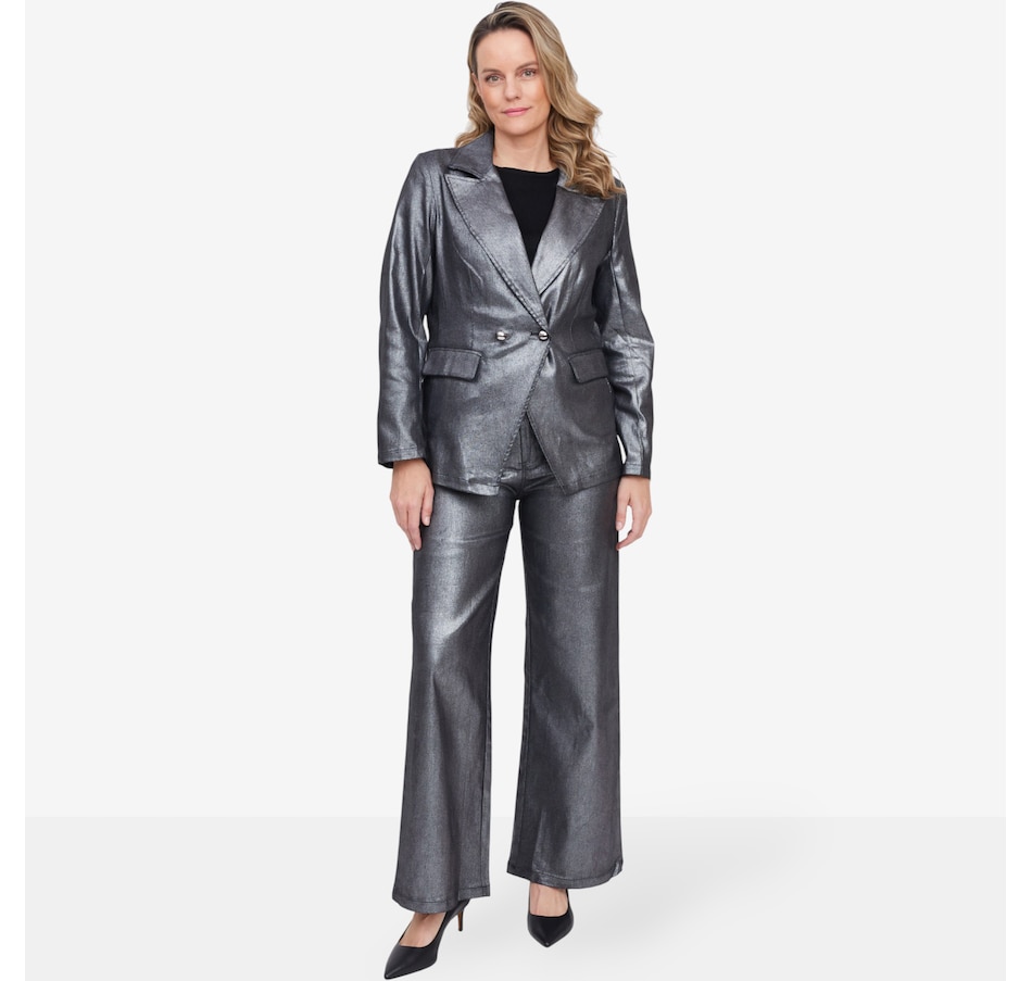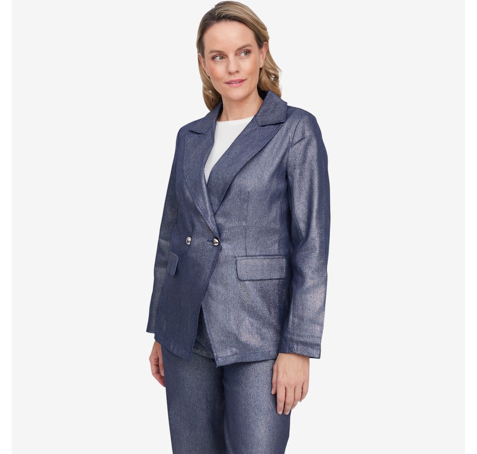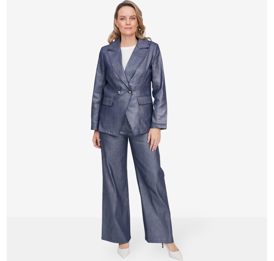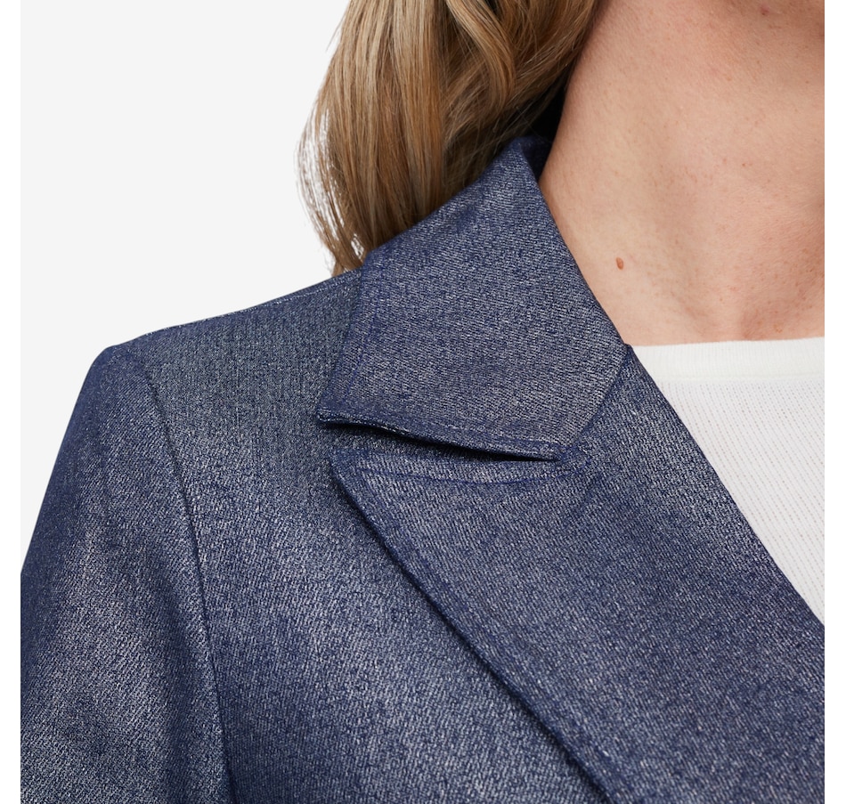 Turn heads with the sophistication of this metallic denim double breasted blazer from Guillaume. Crafted primarily from soft, breathable cotton, it combines the classic structure of denim with a subtle metallic finish for a look that’s both bold and refined. The double-breasted design adds timeless elegance, while its easy-care, machine-washable fabric makes luxury effortlessly practical. Perfect for layering over sleek trousers or a flowing dress, this blazer brings a touch of something extra to any occasion.