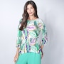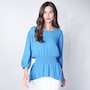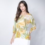 Made from a beautiful lightly crinkled material that is soft to the touch and barely wrinkles, this peplum top's silhouette is always very figure flattering. It can be worn with a large variety of bottoms, from wide leg pants to jeans or a stylish skirt, and can also be dressed up or down for added versatility. It comes in a variety of options: two beautiful and colourful leafy prints run vertically through the solid material, giving it a touch of luxury (the printed versions have no lurex in them.)