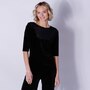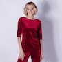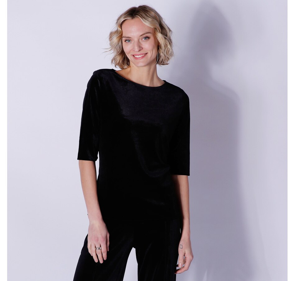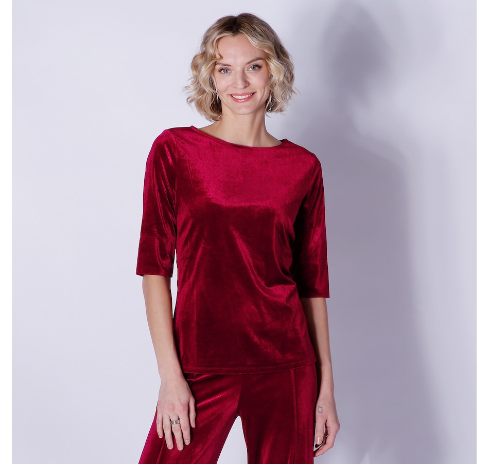 Centre your ensemble in classic, versatile style wearing this stretch velvet boatneck top from Guillaume.