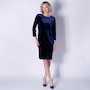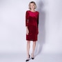 Elevate your wardrobe in undeniable, beautiful style wearing this stretch velvet knee length dress from Guillaume.