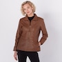 This leather jacket from Guillaume features top-notch lamb quality that's soft and supple, with ultra-flattering seaming and a convertible collar that can be worn open as a wing collar or zipped up as a stand collar. Available in a beautiful choice of neutral and brighter colours, the jacket can be dressed up or down with jeans on weekends, and also features an adjustable sleeve length and a high quality zipper that slides easily. Elevate your style with this chic leather jacket from Guillaume, available at a great value through TSC!