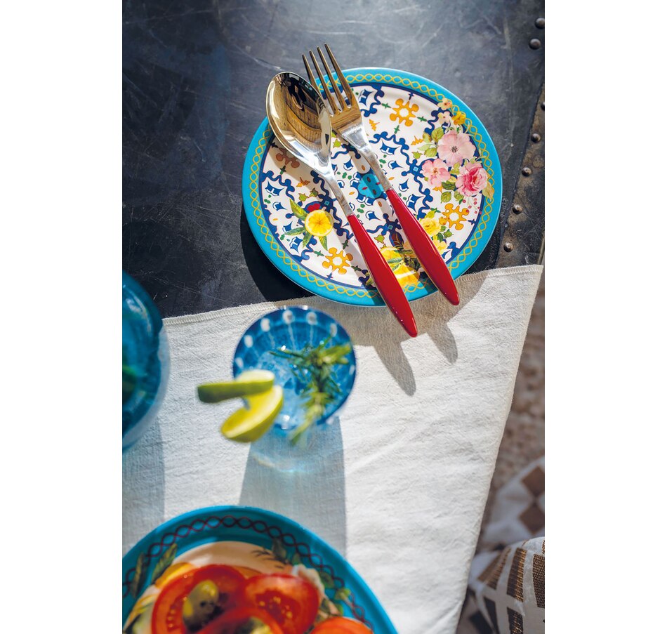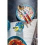 This ‘’Flower and Lemon’’ melamine plate evokes the fragrances and colours of spring flowers and lemon blossoms. It is a bright, fresh addition to any table, equally perfect for an outdoor party, an informal brunch or a special occasion.