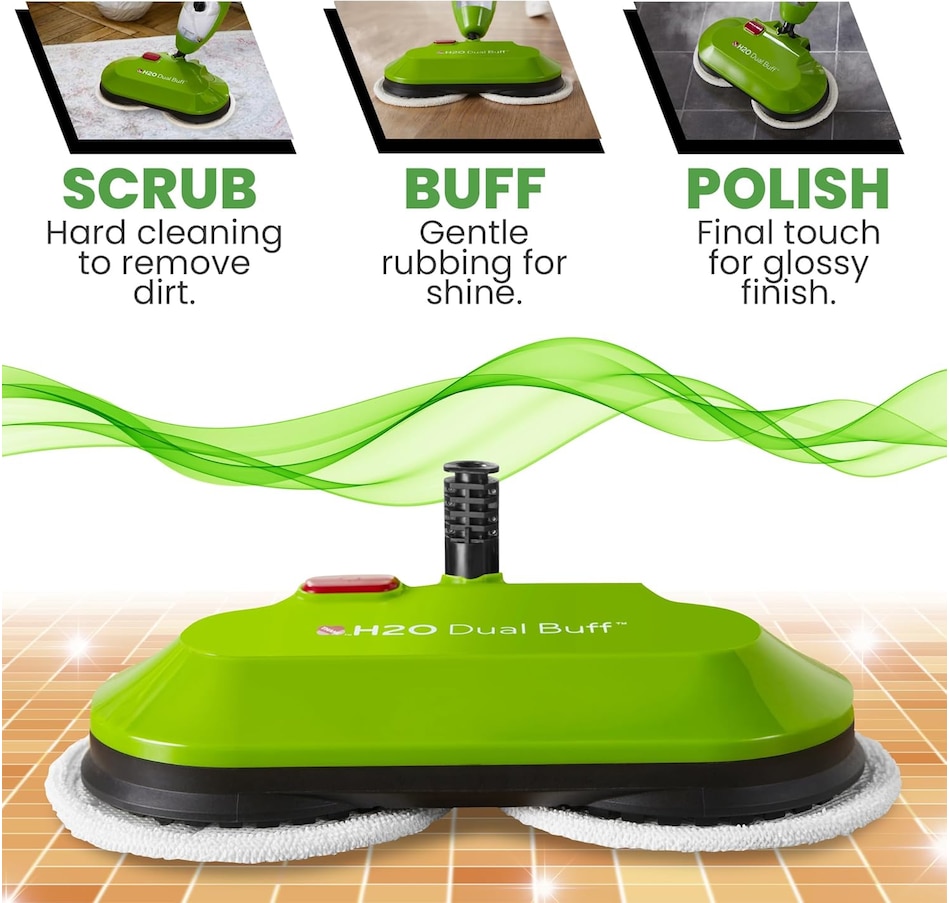 • H2O Mop X5 Dual Buff Steam Mop Head Attachment 3-in-1 Floor Polisher Scrubber and Steamer with Rechargeable Battery