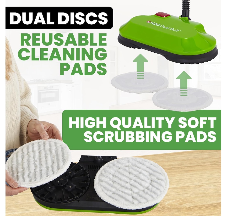 Enhance your steam cleaning with the H2O Mop X5 Dual Buff Steam Mop Head Attachment, a powerful, rechargeable accessory designed to buff, scrub and steam sealed hardwood and tile floors with ease. Featuring dual steam outlets, up to 25 minutes of runtime and two soft scrub washable microfibre pads, this versatile attachment transforms your regular steam mop into a dynamic floor care system for deeper cleaning and polishing.