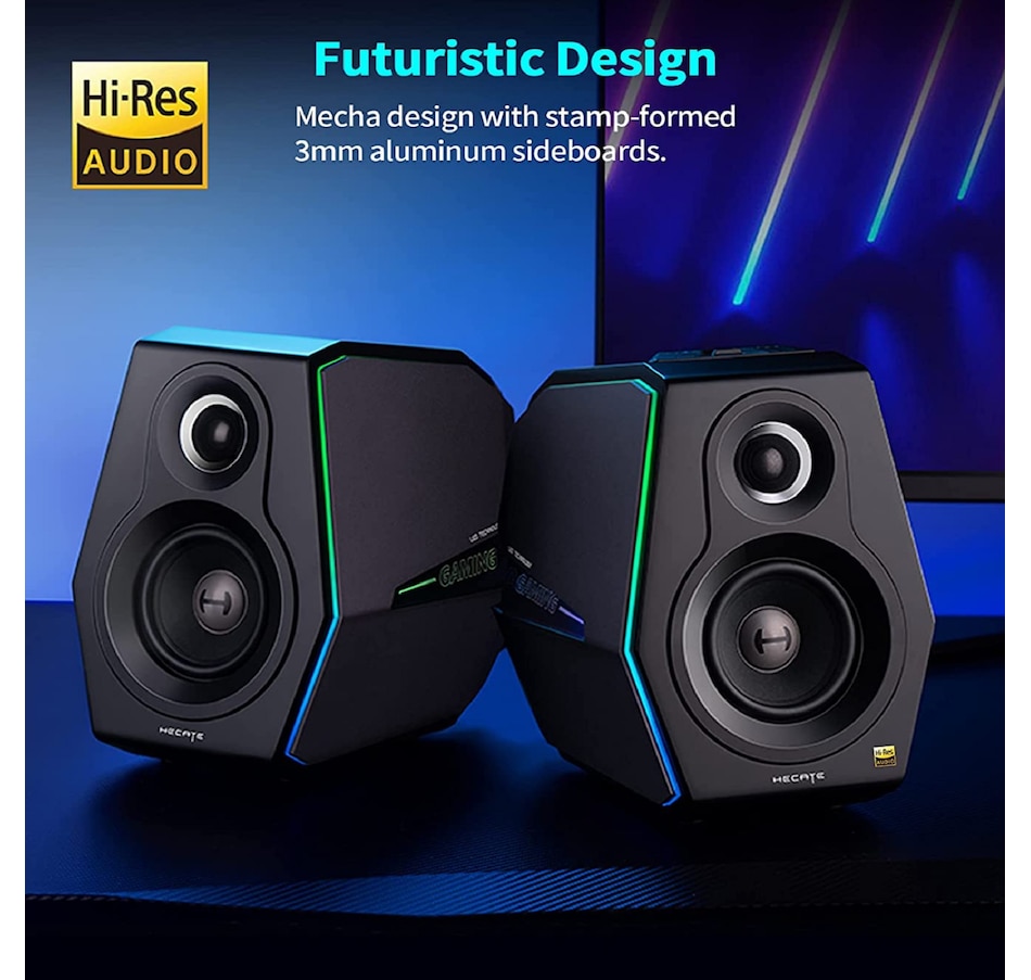 【unique design】combining a traditional mdf speaker casing with a futuristic, aluminium side panel design, edifier have created a stylish speaker featuring their flagship acoustic tuning and rgb lighting effects. Immersive yourself in a whole new gaming world with these impressive speakers!
