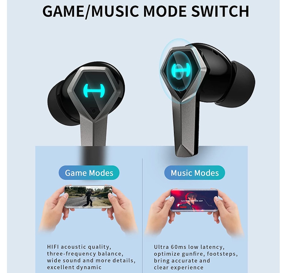 【60ms ultra low latency】 meet your needs for 60ms low latency and detailed sound in gaming, superb noise cancellation and gaming mode, these wireless earbuds will provide you the perfect gaming experience.