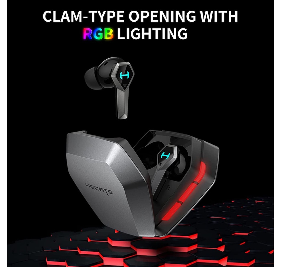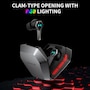 【unique design with rgb】 clam-type opening with rgb lighting effect to highlight gaming atmosphere. When you open the charging case, the rgb light will turns on automatically to attract everyone's attention.