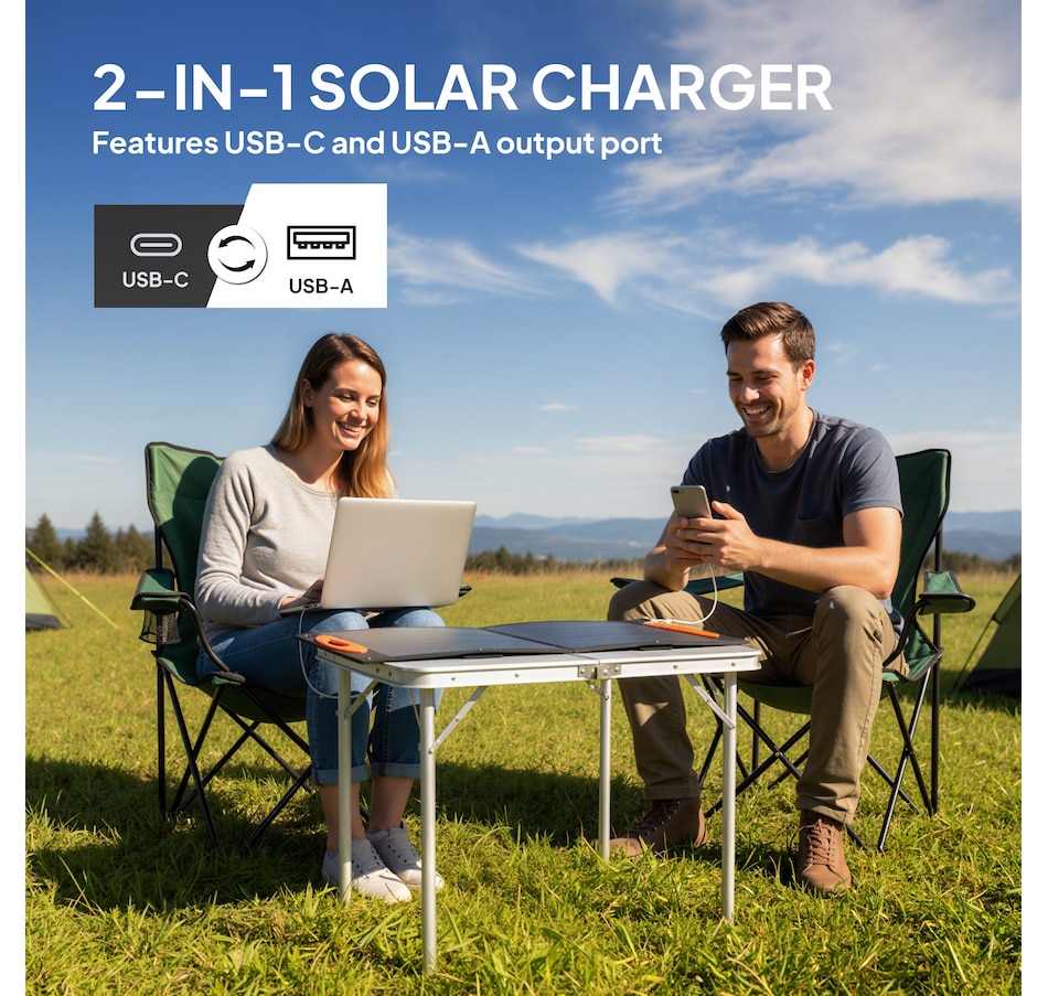 100W Portable Solar Panel Solar Charger with USB-A & USB-C Output