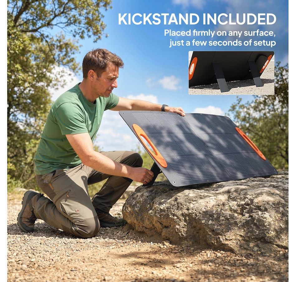 ● Features a built-in kickstand, allowing for optimal sun exposure anywhere;