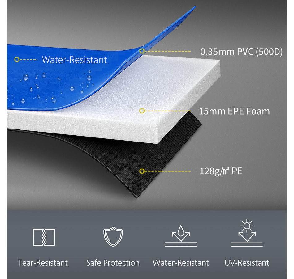 ● Good quality and safety cover made of 500D Plastic on the top and 128g/㎡ PE on the bottom