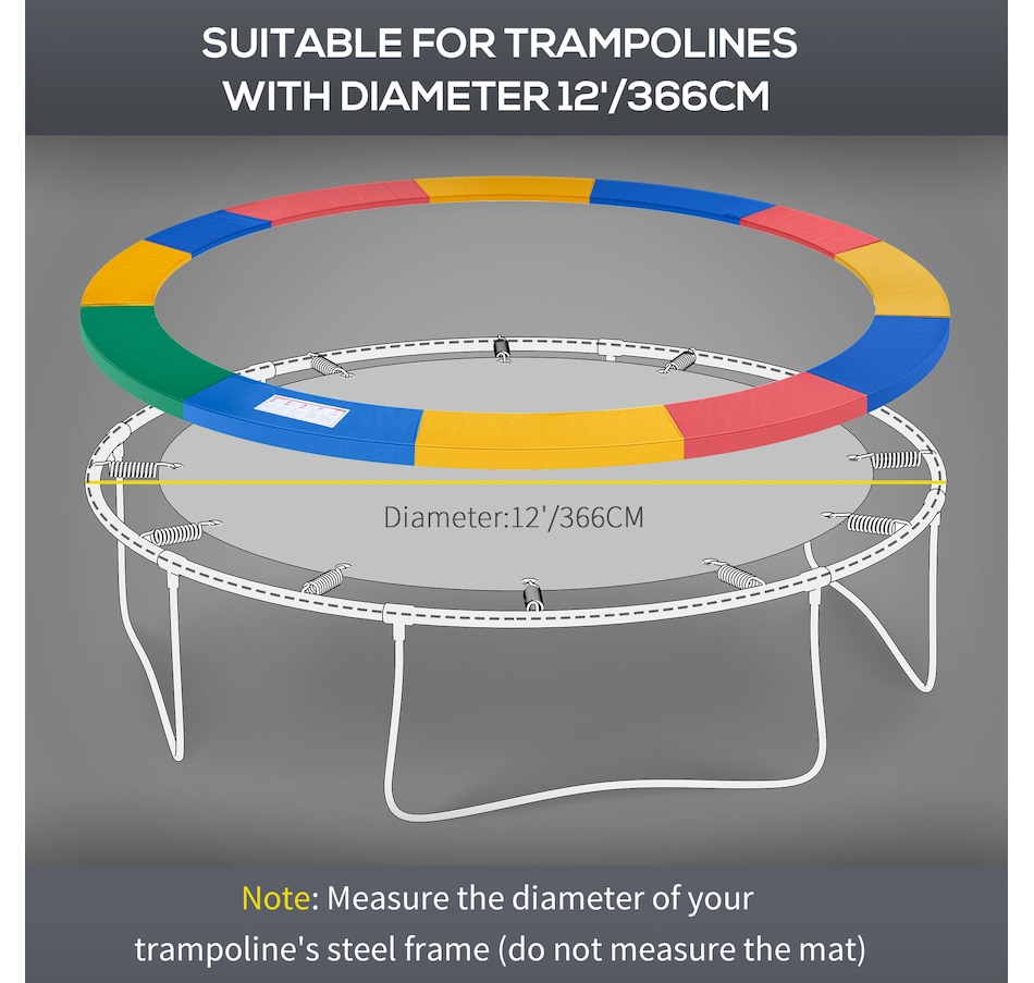 ● 1-piece design for maximum protection , fits very neat on the 12' trampoline