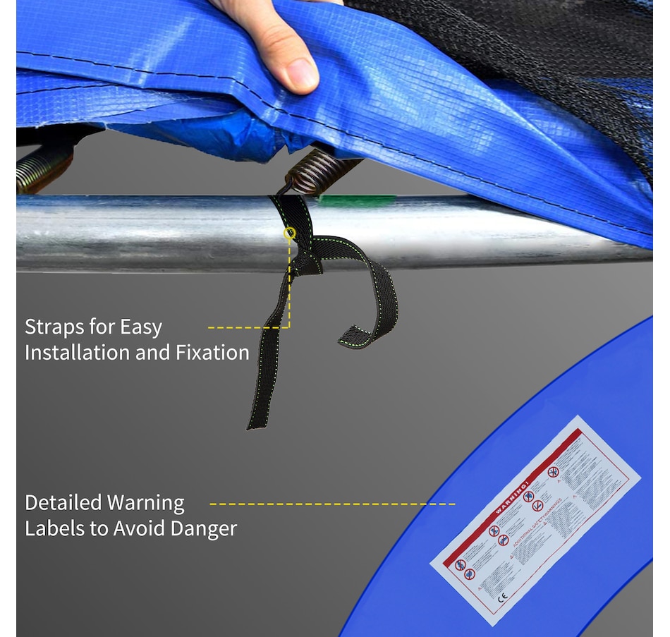 ● Deep side skirt overlaps full trampoline frame