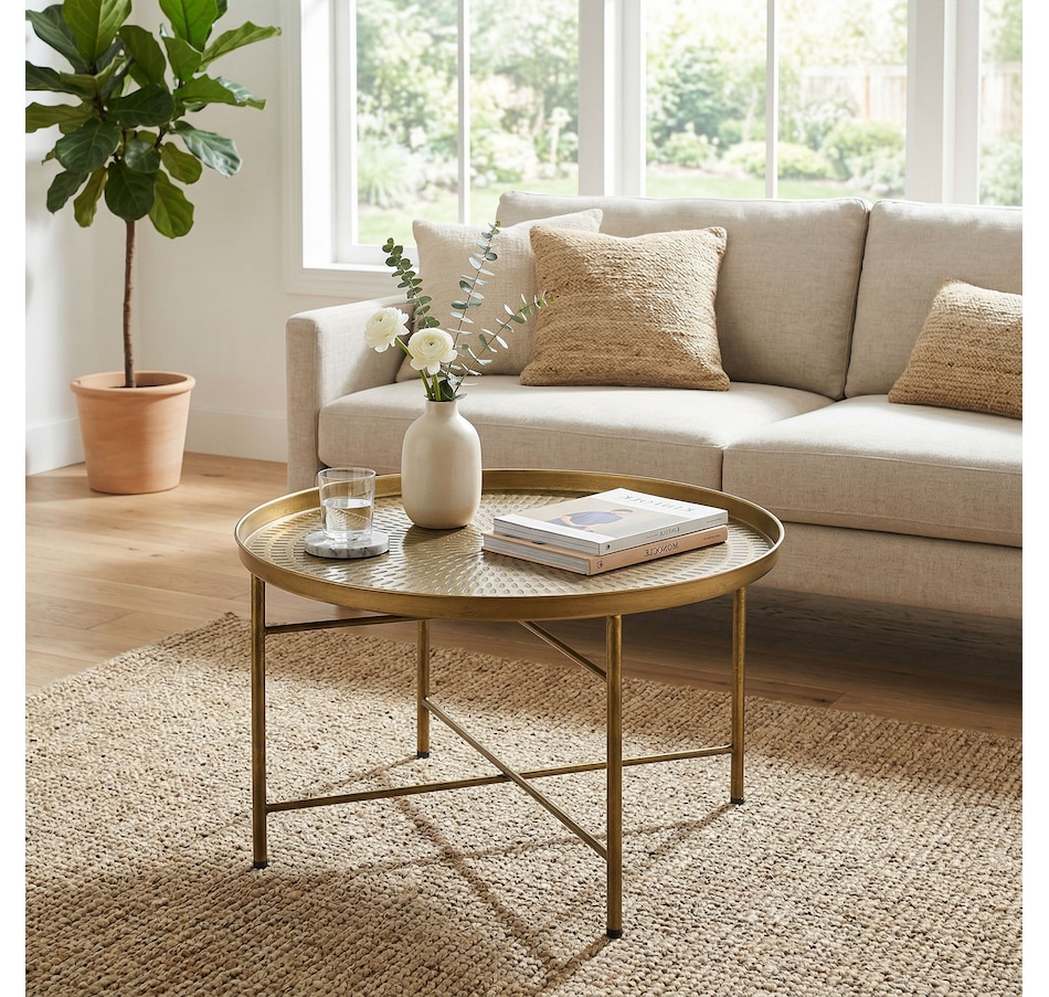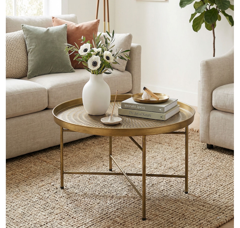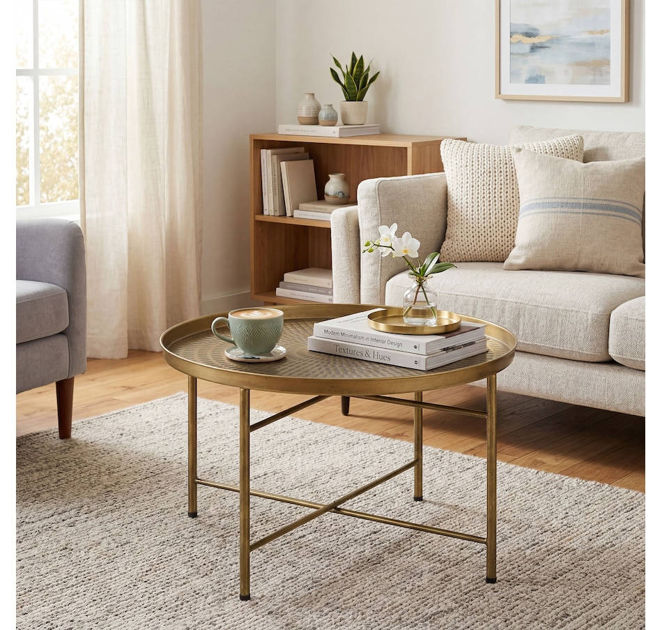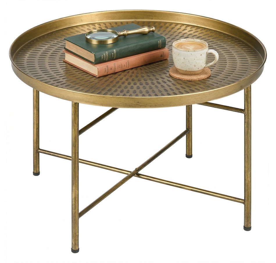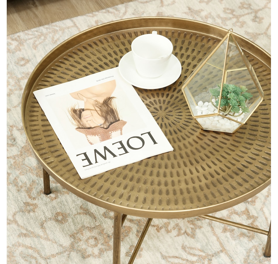 24" Round Coffee Table with Hammered Tray Top Metal Center Table