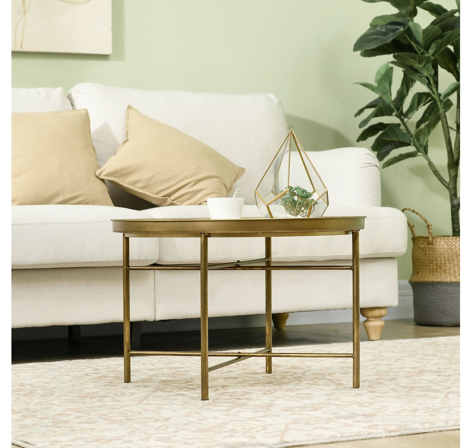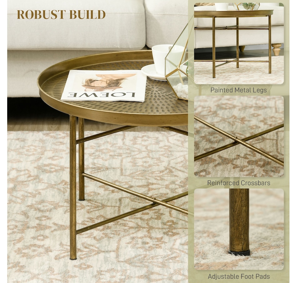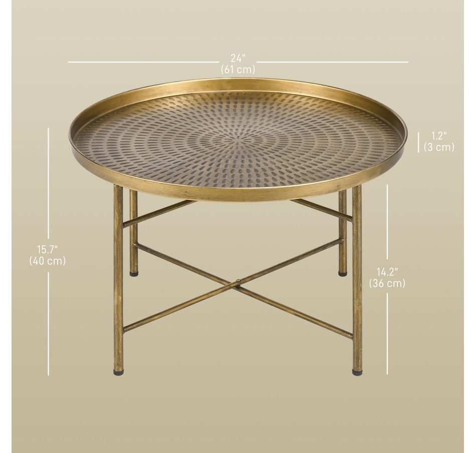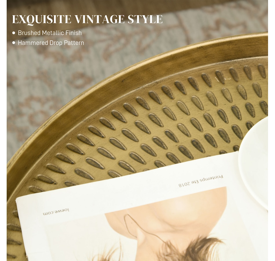 Dull, uninspiring furniture often makes a living room feel flat and disorganized, especially in smaller urban apartments. This HOMCOM coffee table features a unique hammered tray top that prevents spills while adding a luxurious boho touch. Its solid metal construction ensures a stable, wobble-free surface for your drinks or decor. Elevate your home with this space-saving, handcrafted center table that brings both effortless style and everyday functionality.