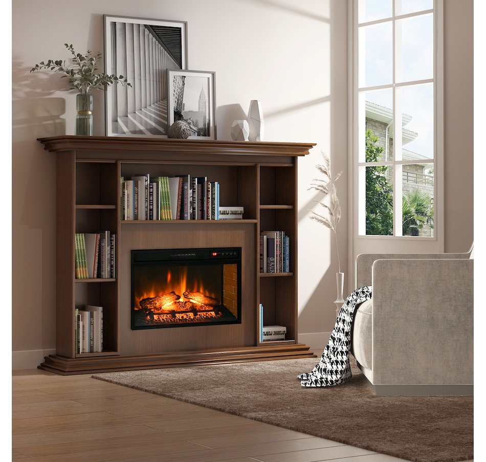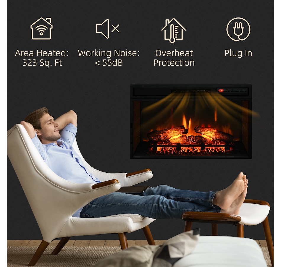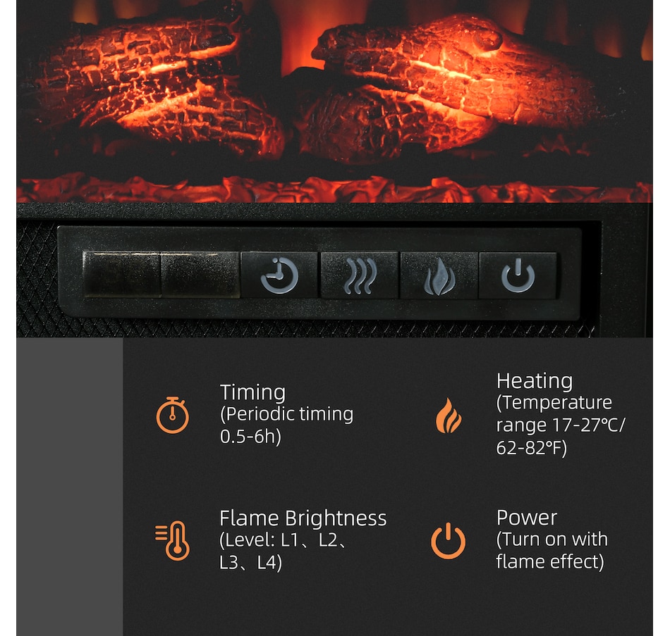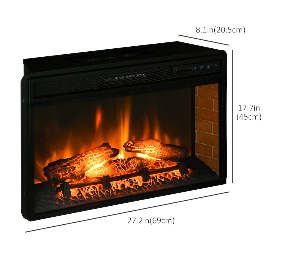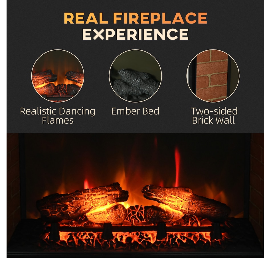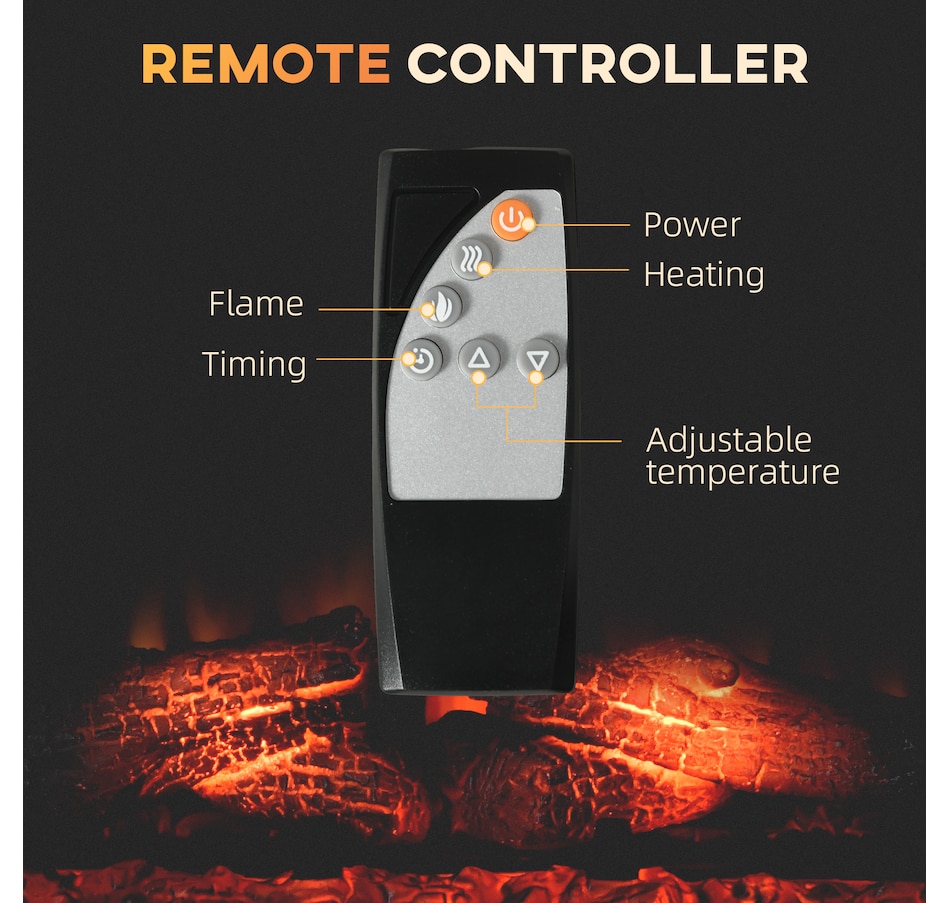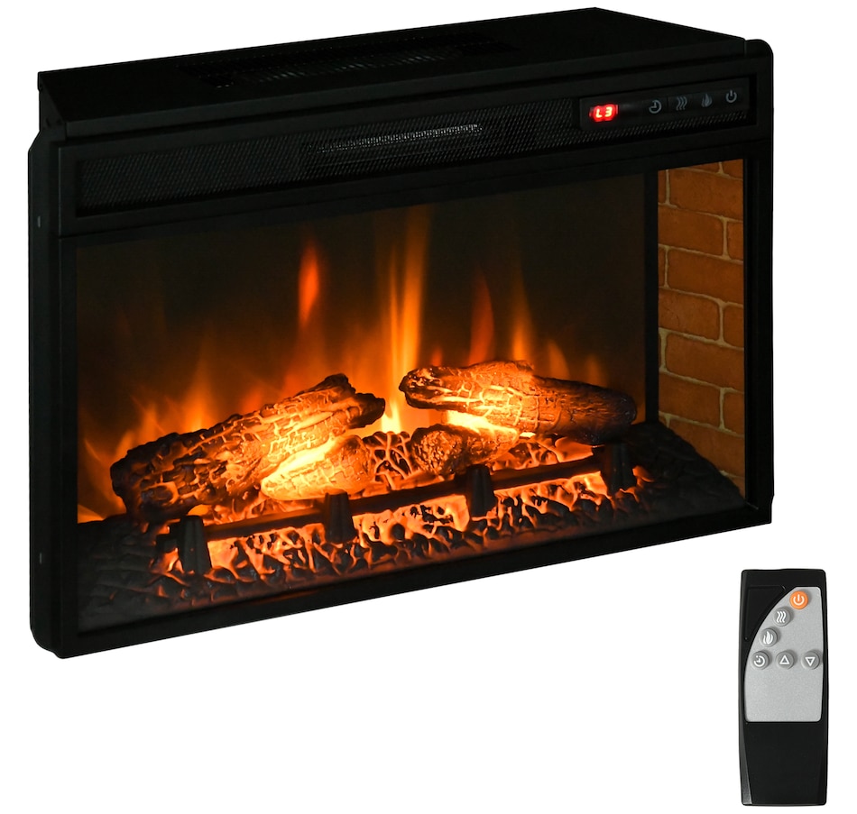 Spend some quality time in the warm glow of a dancing fire with this HOMCOM electric fireplace insert. The fake fireplace can be perfectly installed in the living room under the TV as a heater or a decorative piece with no heat for ambience. Wood log with realistic flame to capture the charm of a wood-burning fireplace. A remote control for convenient operation so that you can personalize it to your comfort and mood.Features:
