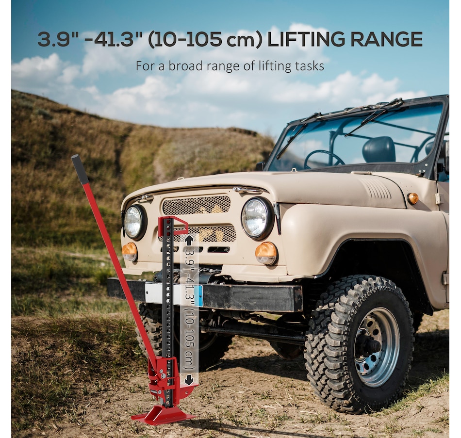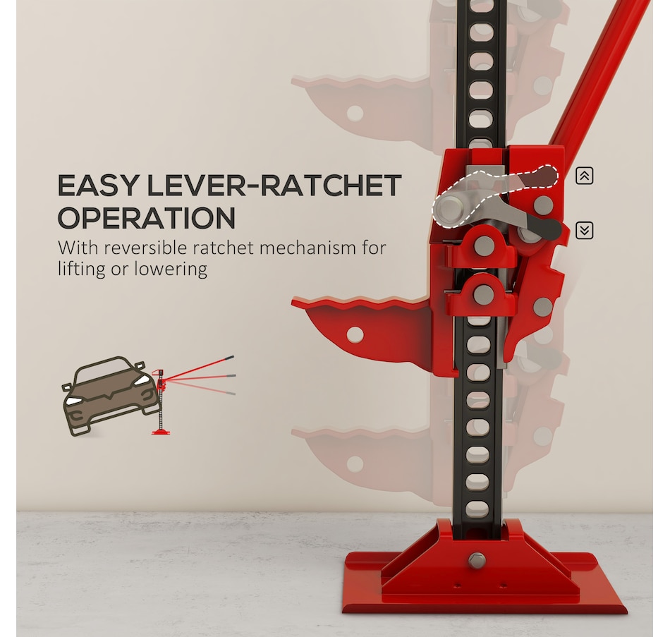 Elevate your tractors and agricultural tasks effortlessly with the HOMCOM farm jack. Boasting a robust 6600 lbs. (3 Tonne) capacity and a maximum lifting height of 41.3" (105 cm), this high lift jack simplifies work with its lever-ratchet operation and reversible ratchet mechanism for both lifting and lowering. It's ready to tackle any challenge, no sweat!Features: