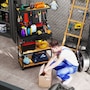 ● A large pegboard with included various hooks keeps tools organized for quick access;