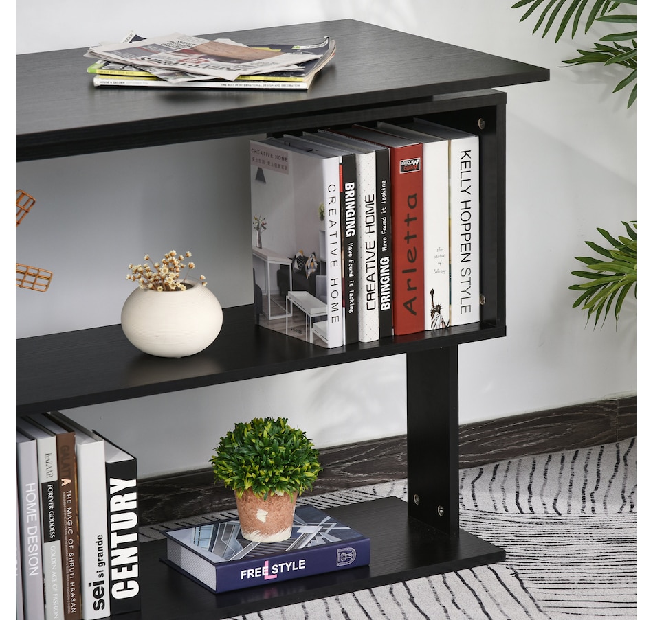 - 2 tier S-shaped shelf and 3-tier side storage rack provide extra room for book, files, equipment, papers etc.