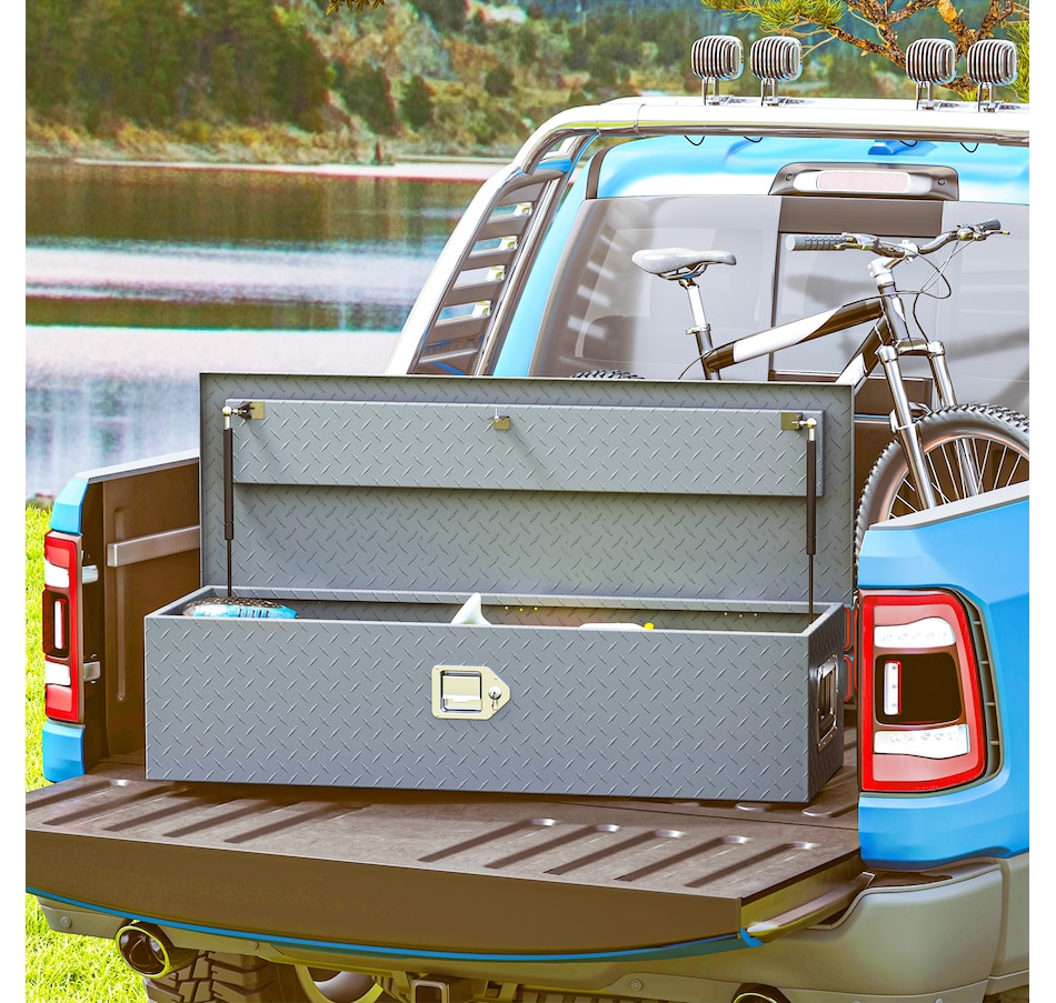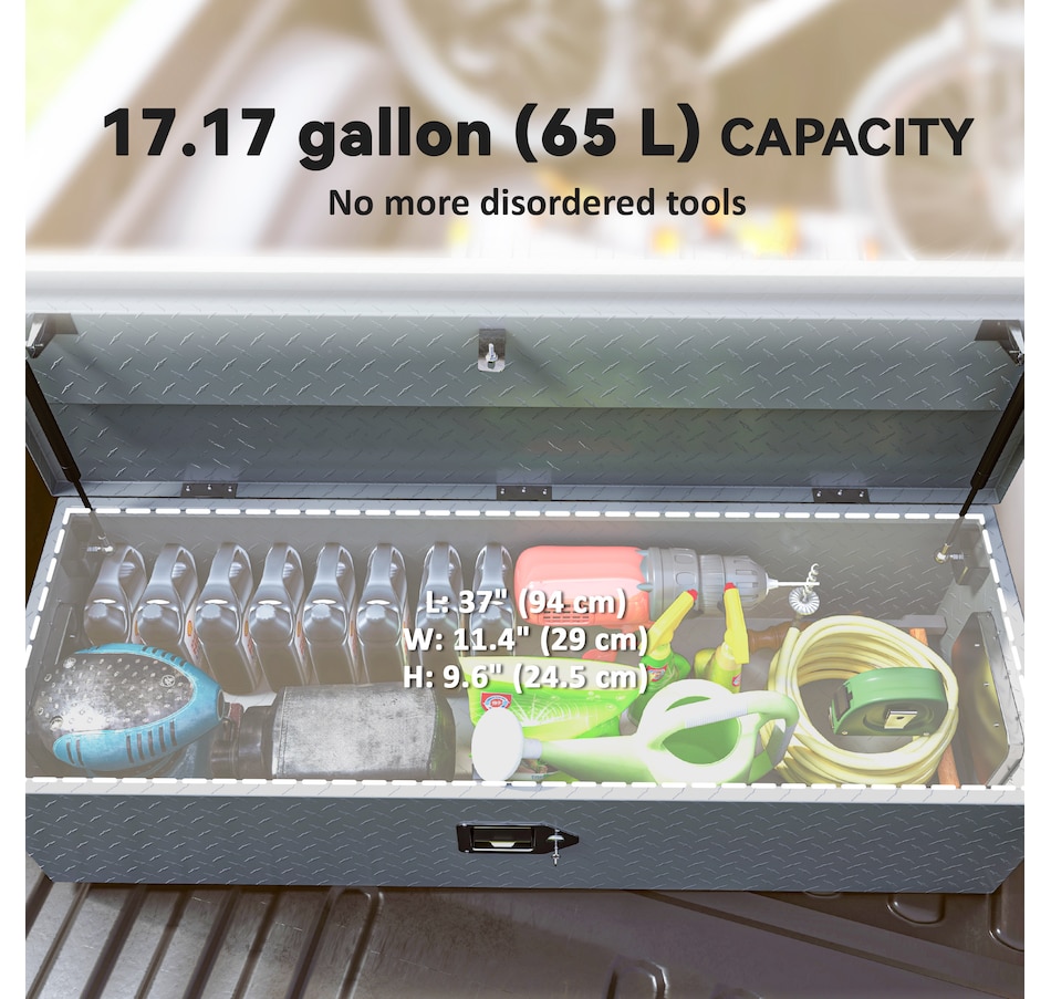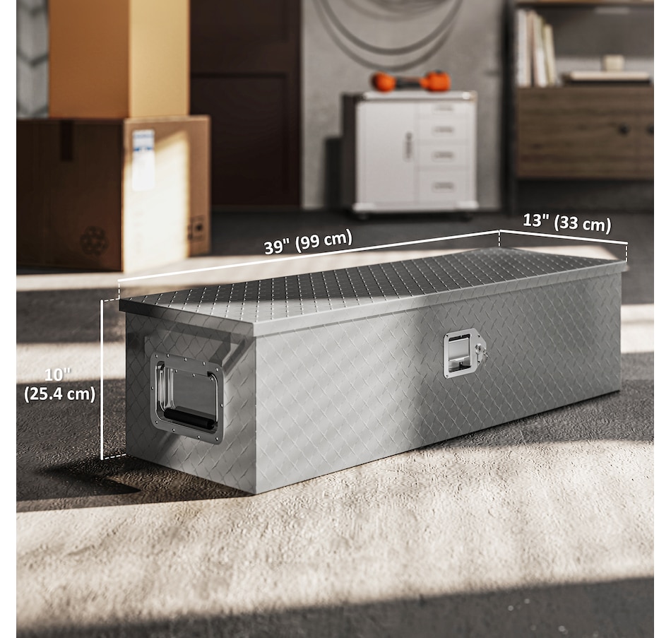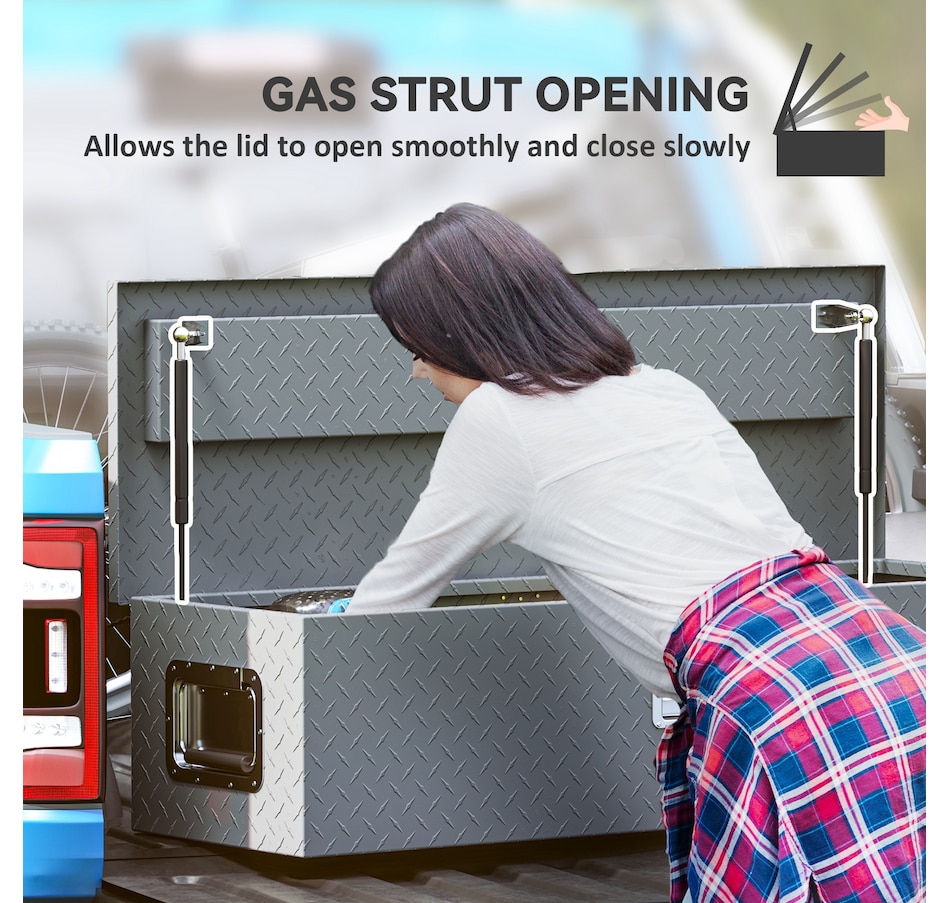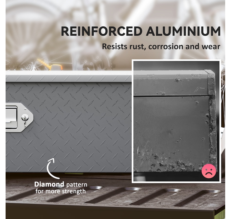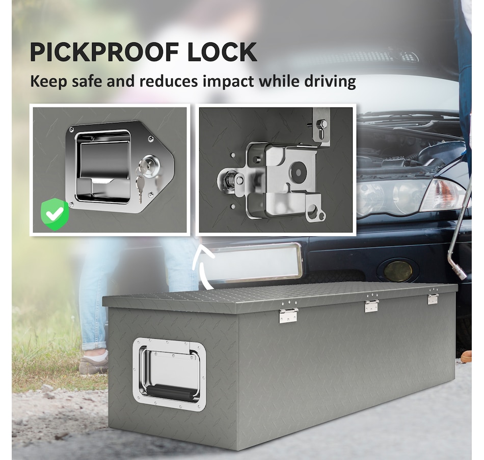 Looking for the storage solution for your trip? The truck tool box from HOMCOM combines durability and weather-resistance to keep your tools and equipment secure on the go. Crafted from aluminum, it offers a lockable, spacious design that fits most trailer types. With its strong build and generous capacity, this box is an essential upgrade to keep your gear safe, organized, and ready for any journey.Features: